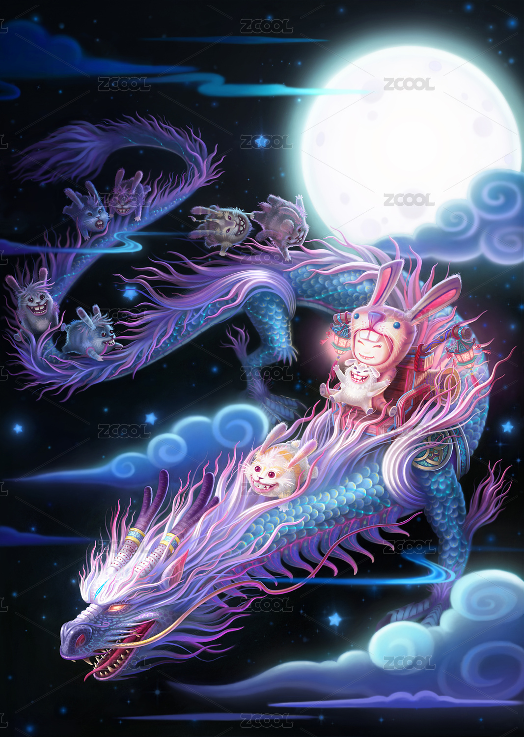 门神女装花木兰手拿化妆品骑着龙-竖版