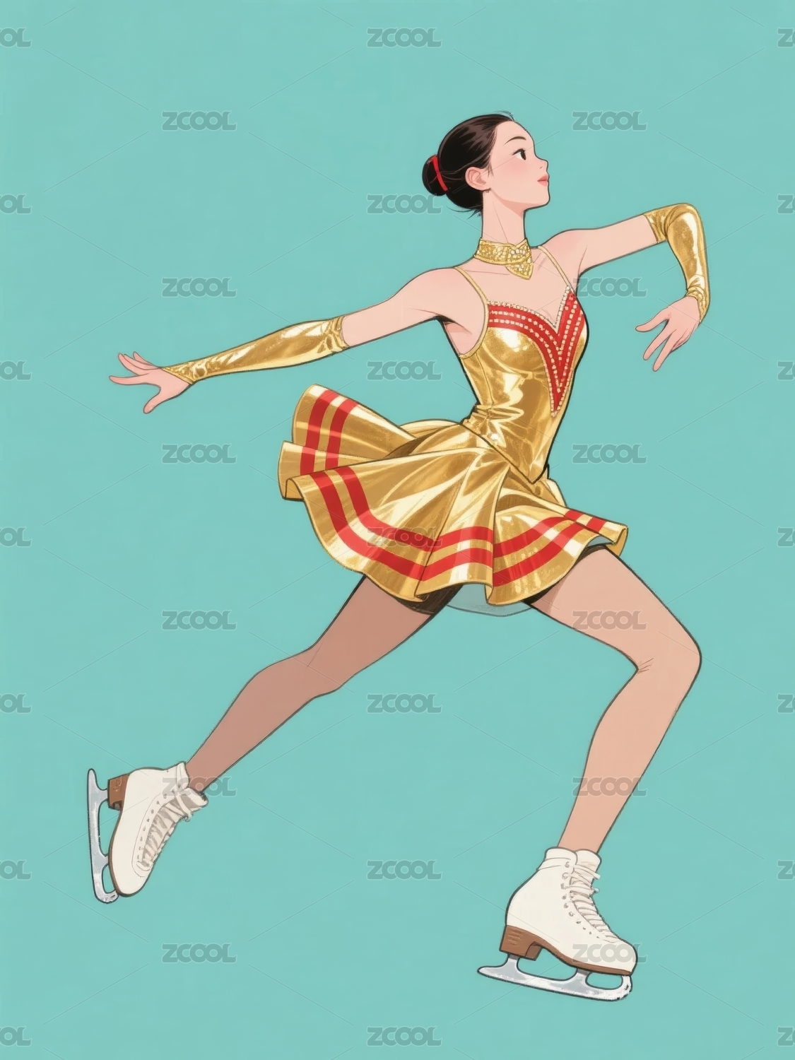 跳舞,女孩,水彩风,插画,飘逸,开心