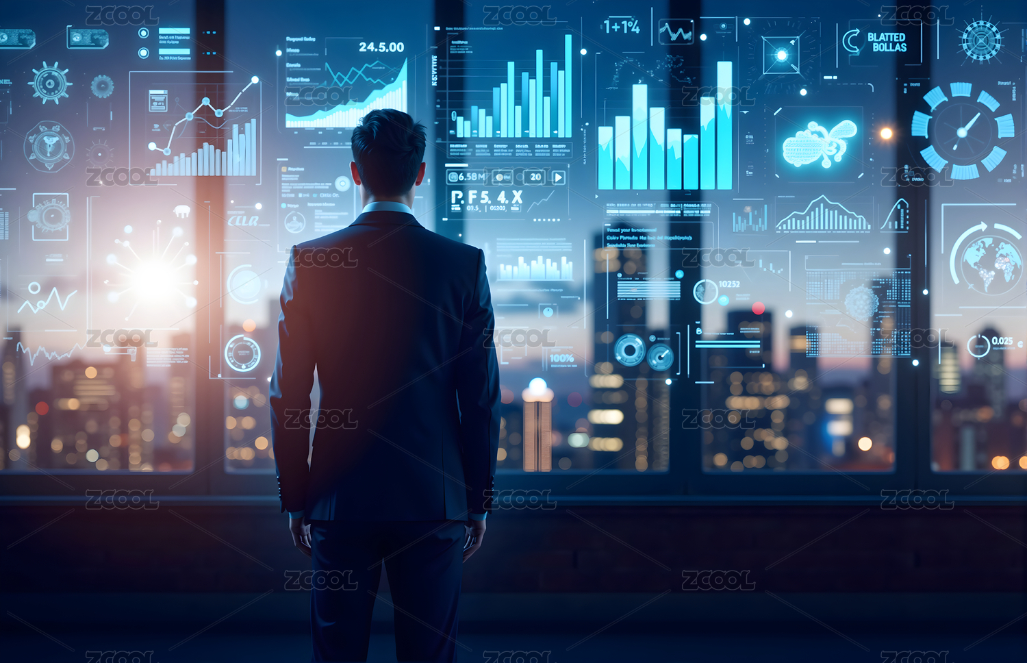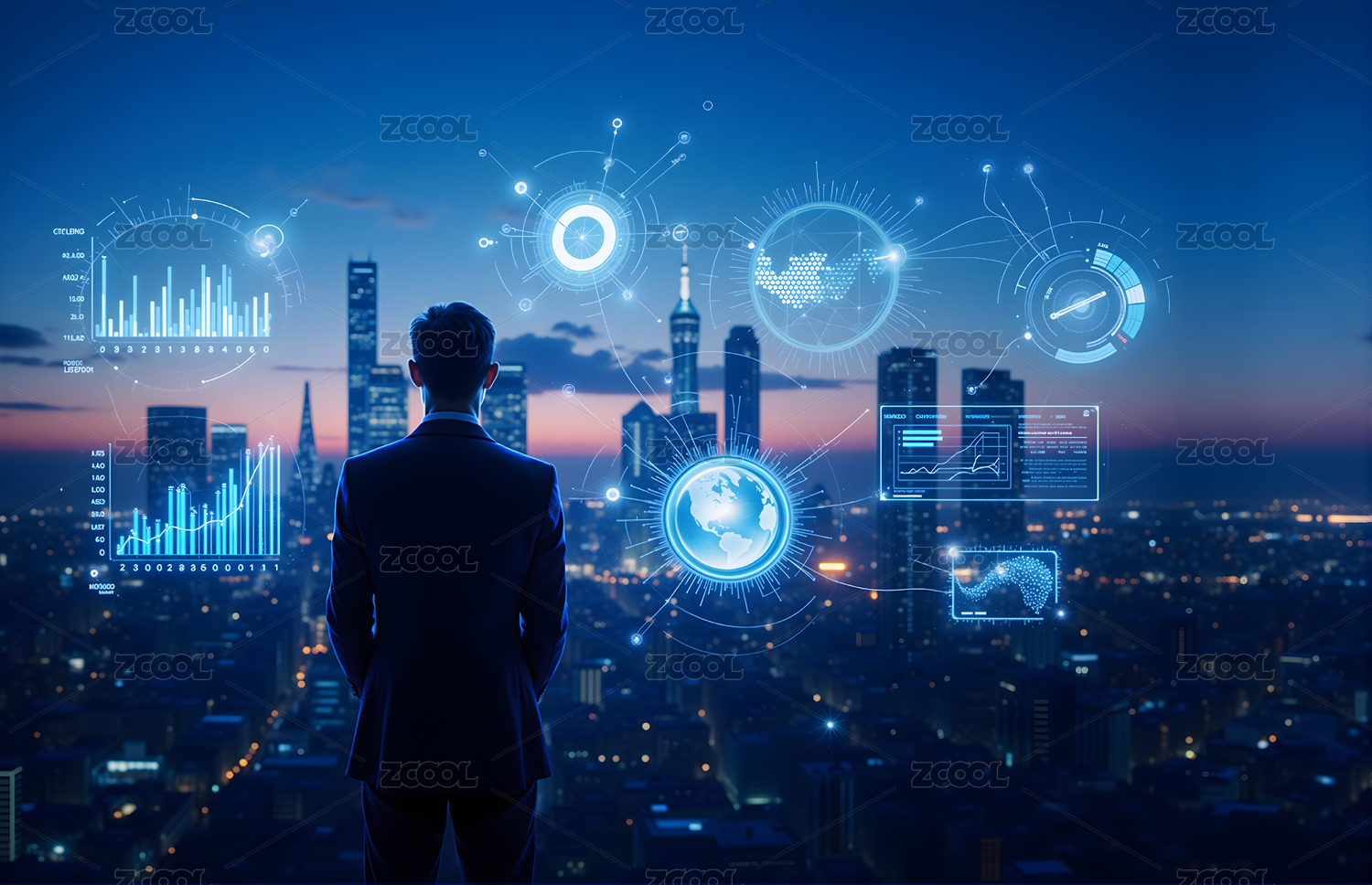 商务人士与科技数据