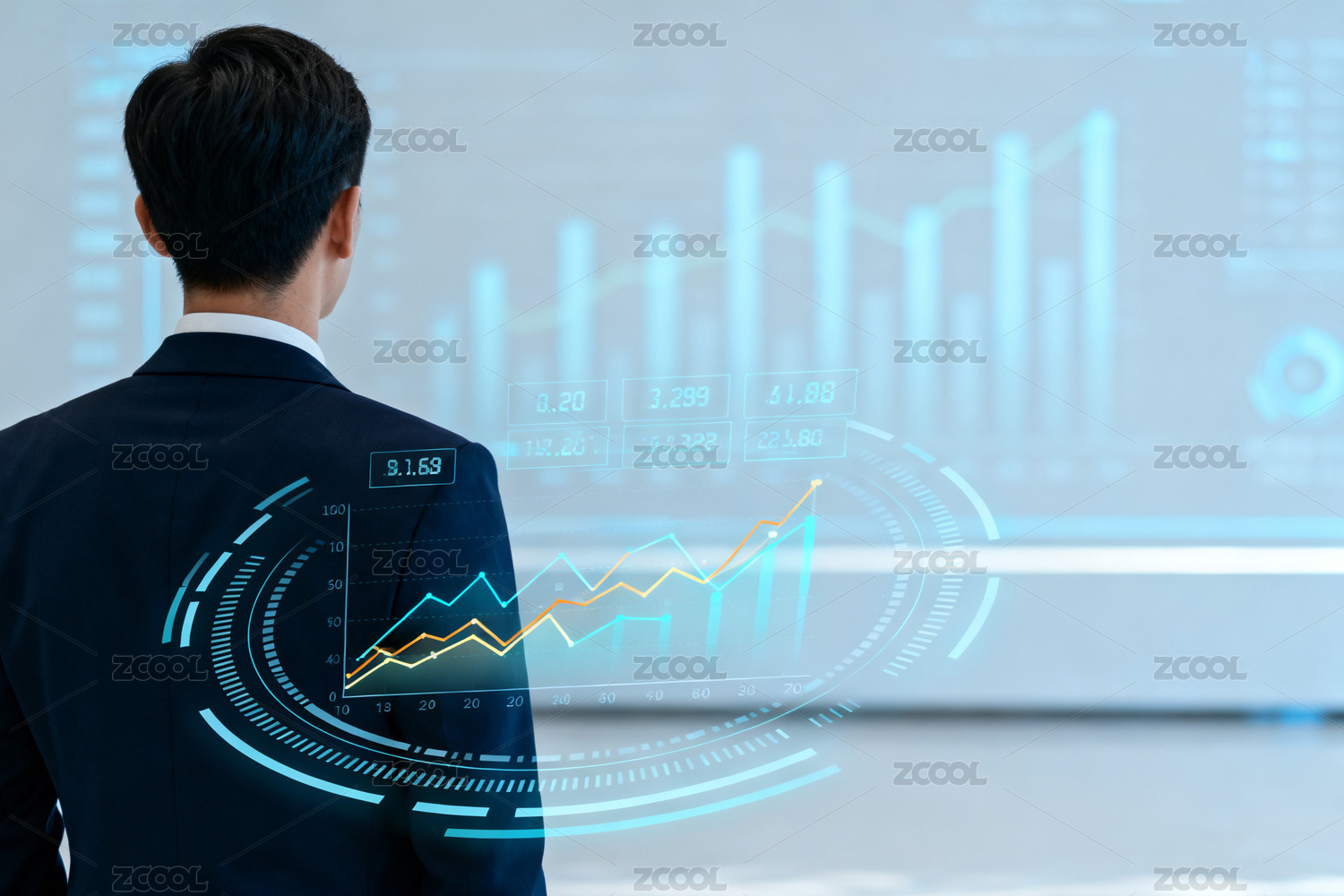 男人背影屏幕金融股票数据