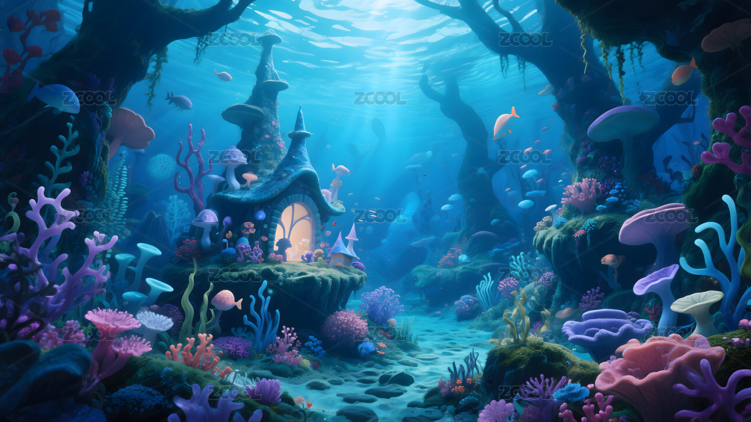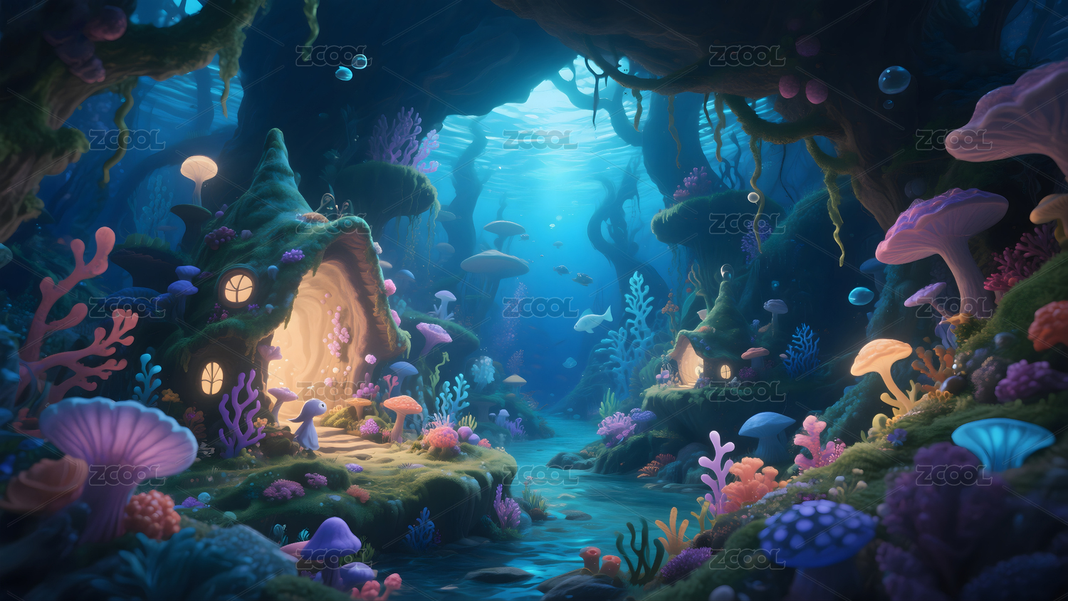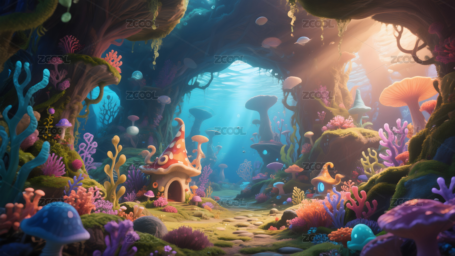 蘑菇,森林,阳光,树干,岩石,草地,植物,神秘,幻想,仙境