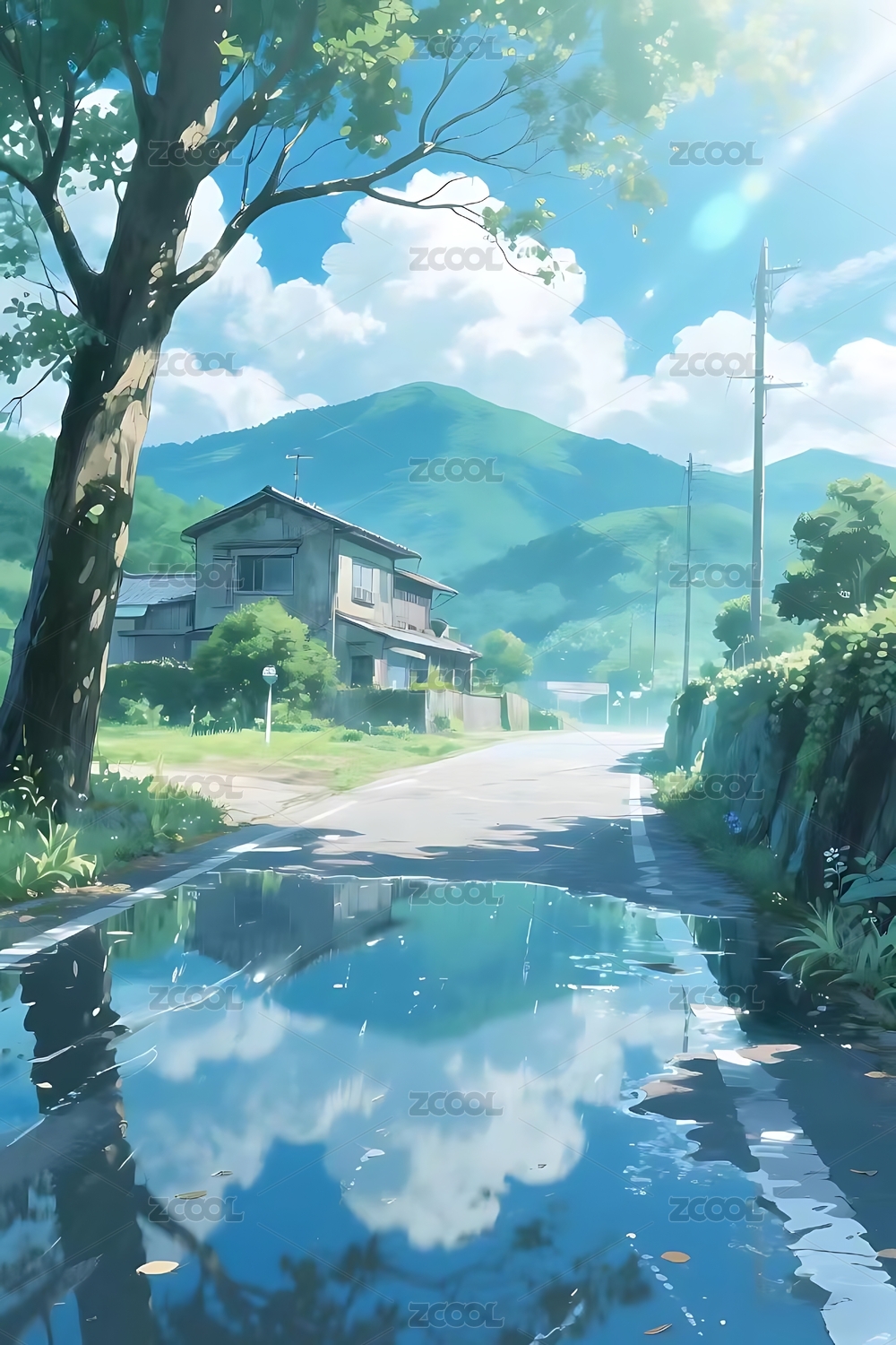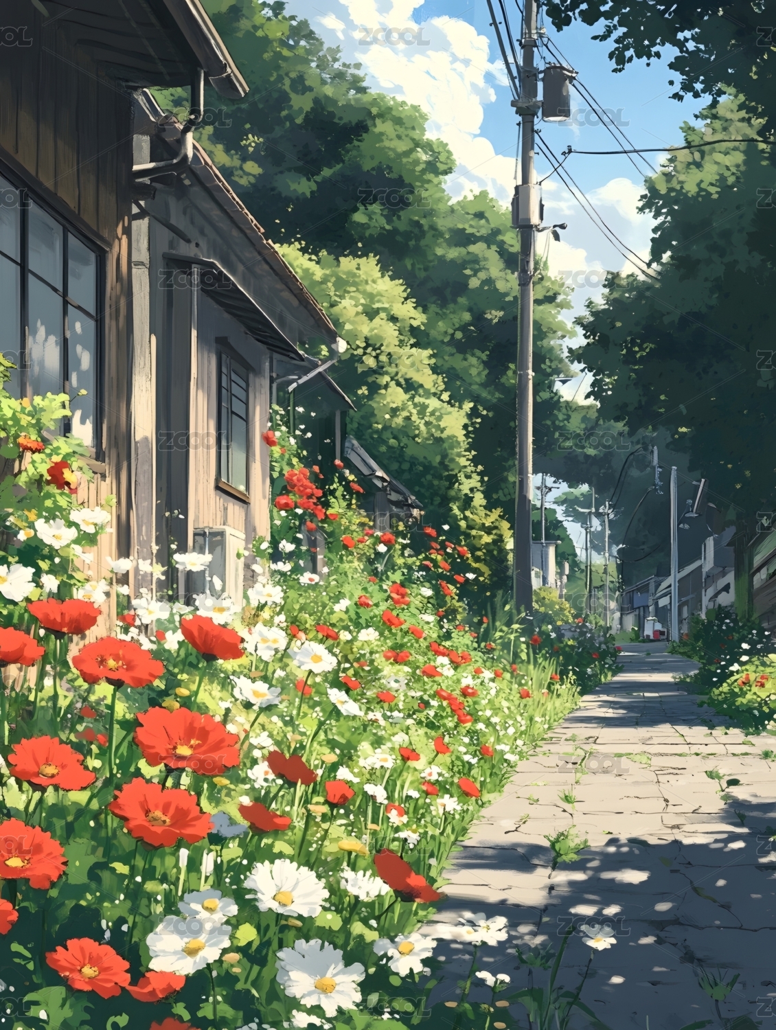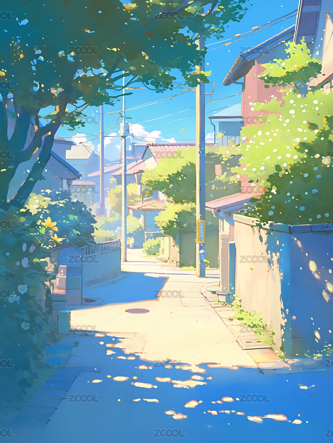 小镇路边风景新海诚插画