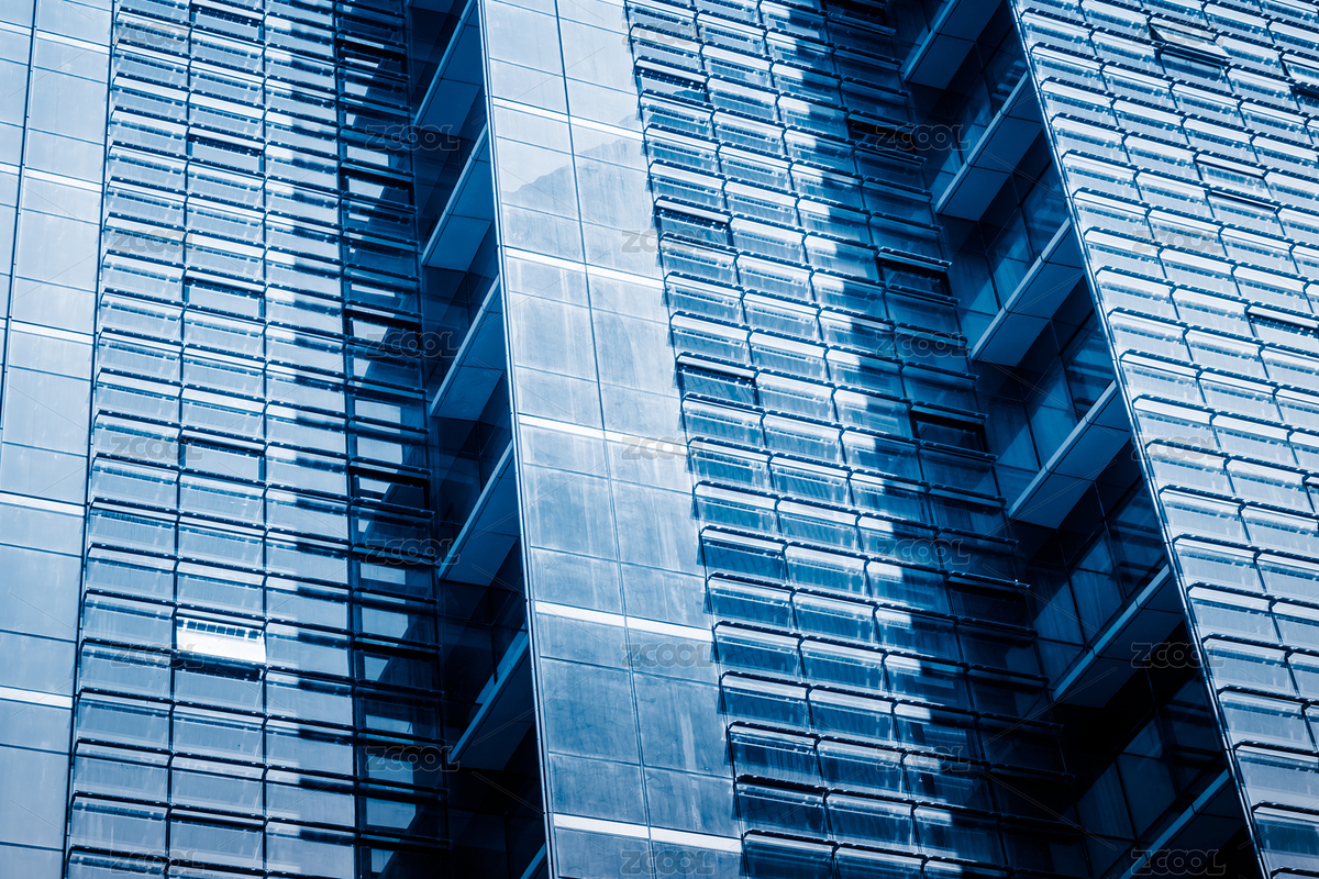 抽象的建筑摩天大楼的蓝色玻璃墙