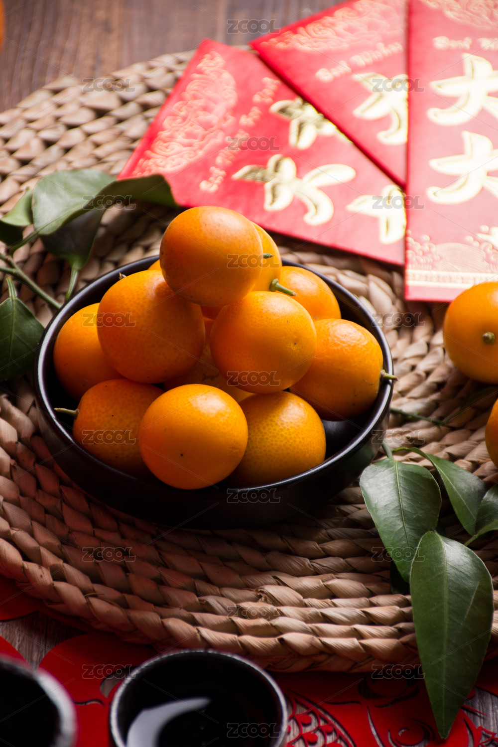 水果,新年,年味,喜庆,红色,暗调,甜,祝愿,金桔,红包