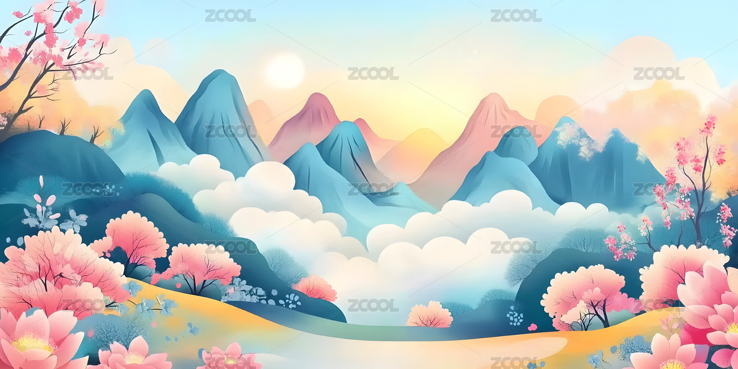 春分节气燕子飞翔春天户外风景踏青国潮插画