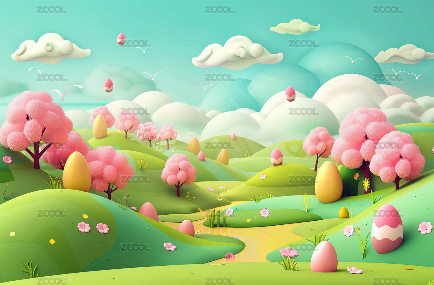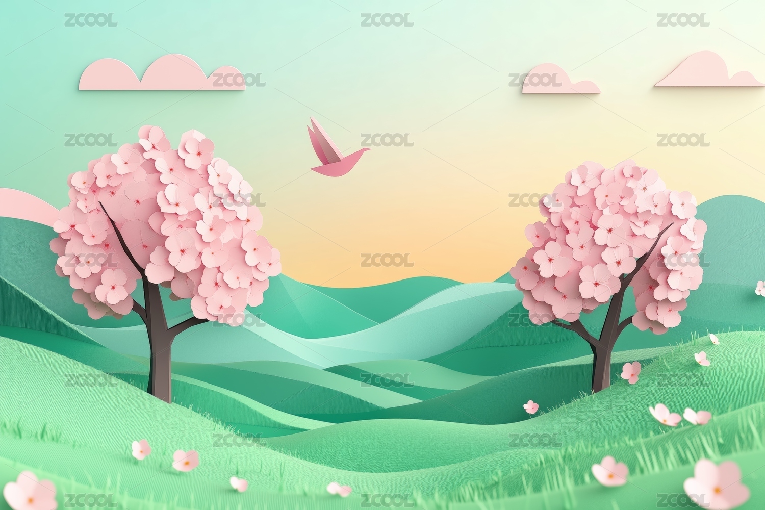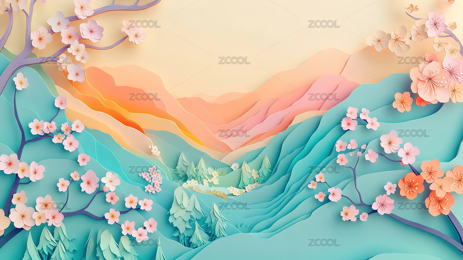 3D风格自然风景设计图案