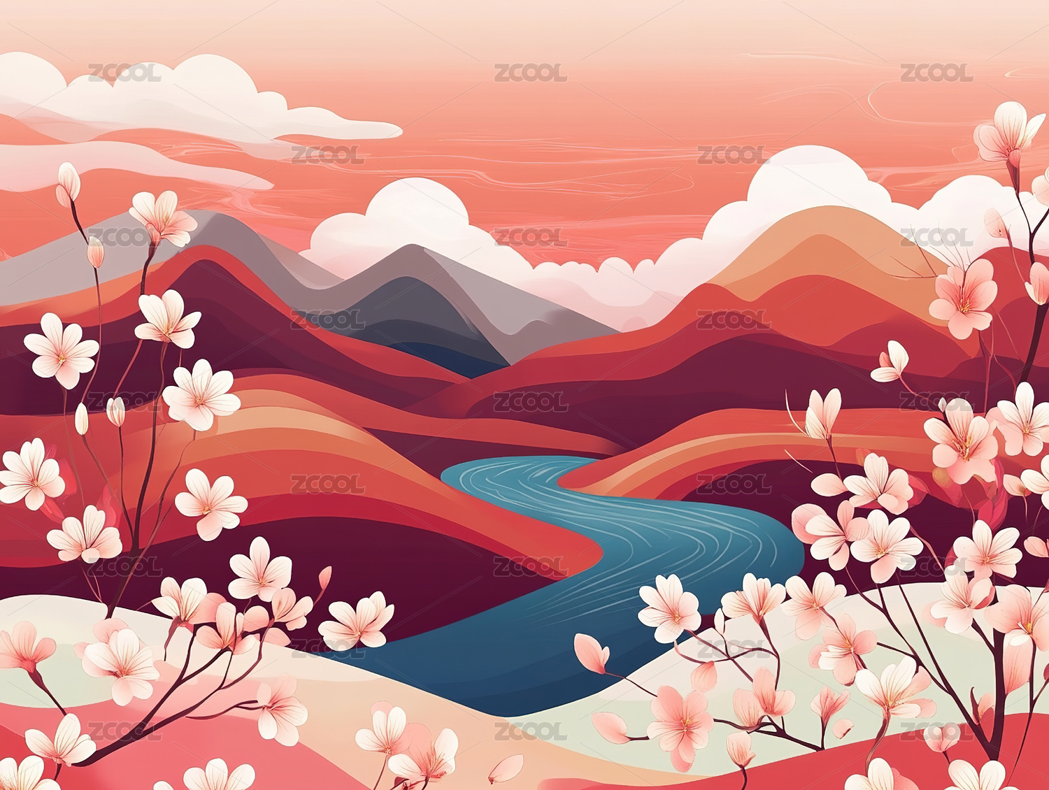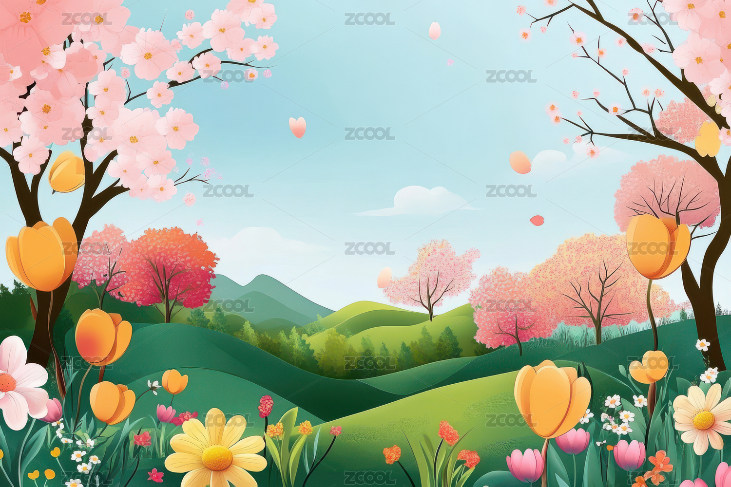 手绘唯美的春天风景插画
