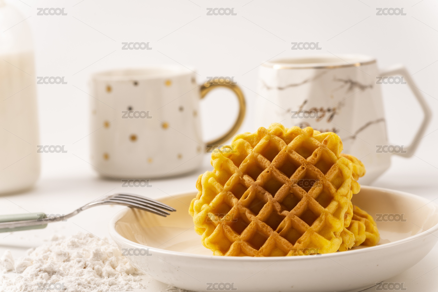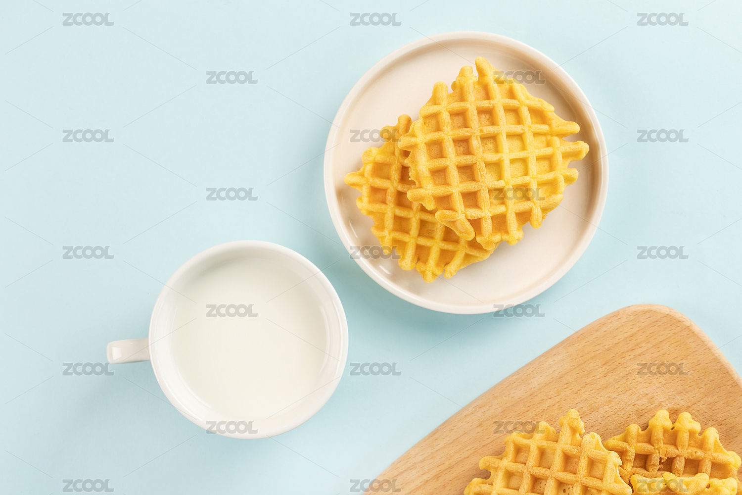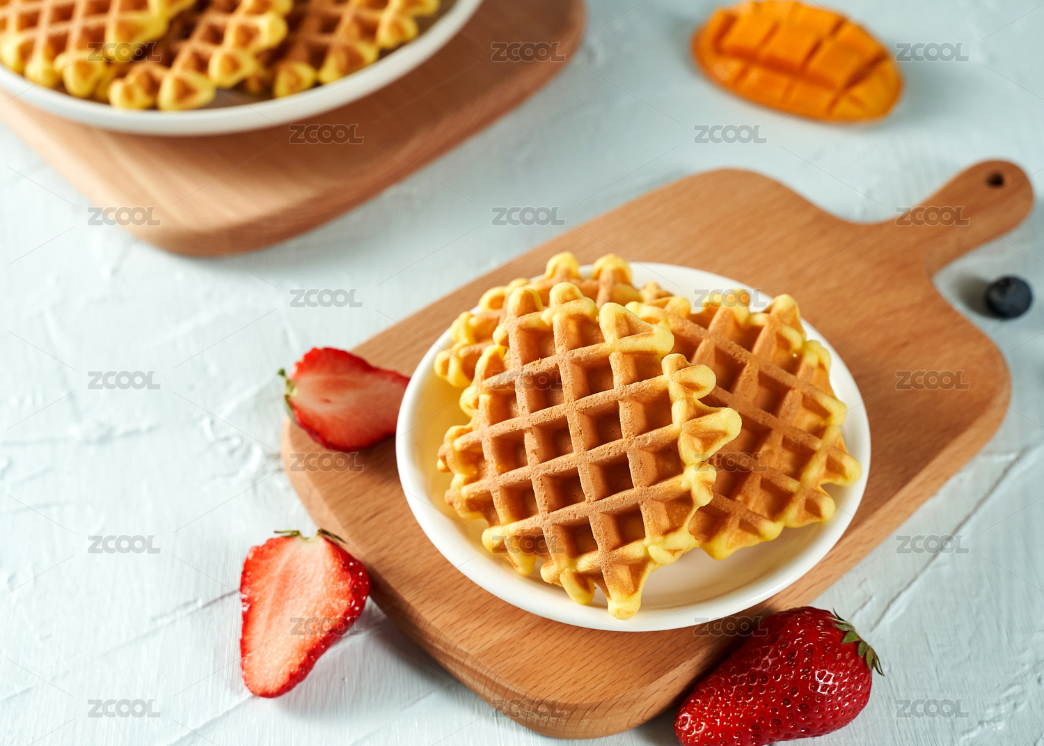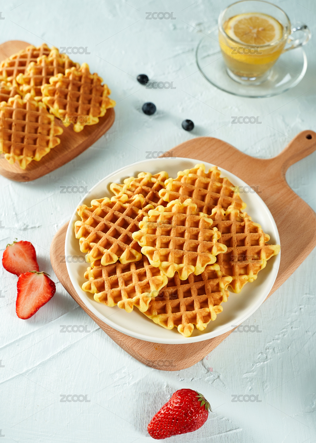 浅色背景上摆放的华夫饼