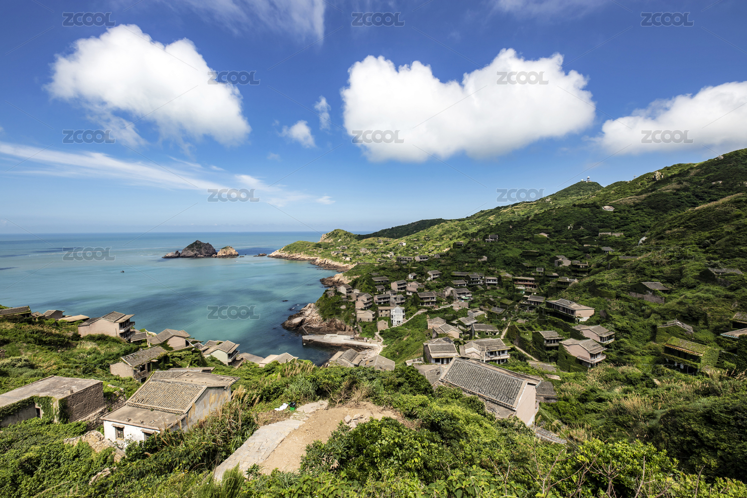 中国浙江嵊泗县枸杞岛无人村鬼村雨天远眺特写