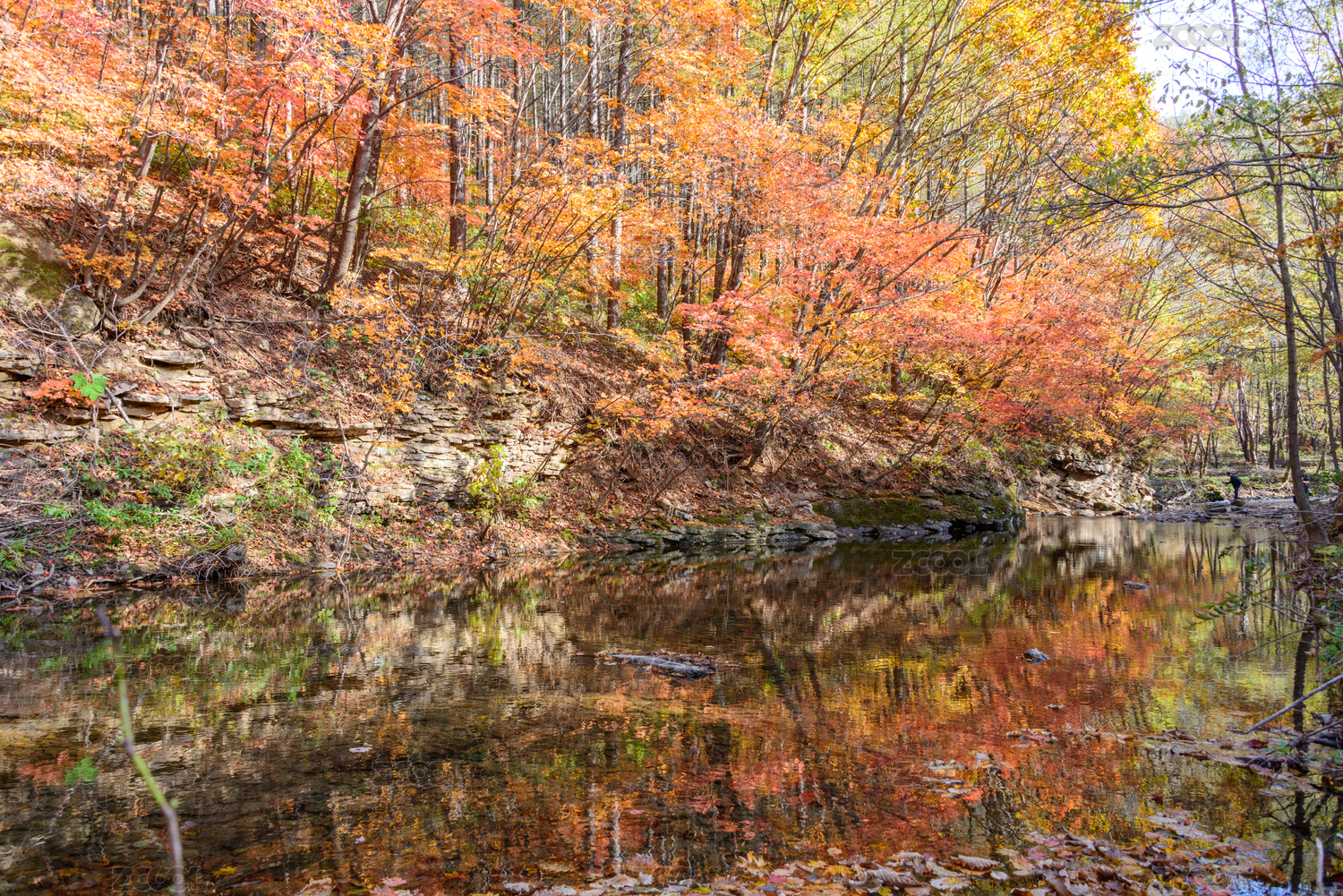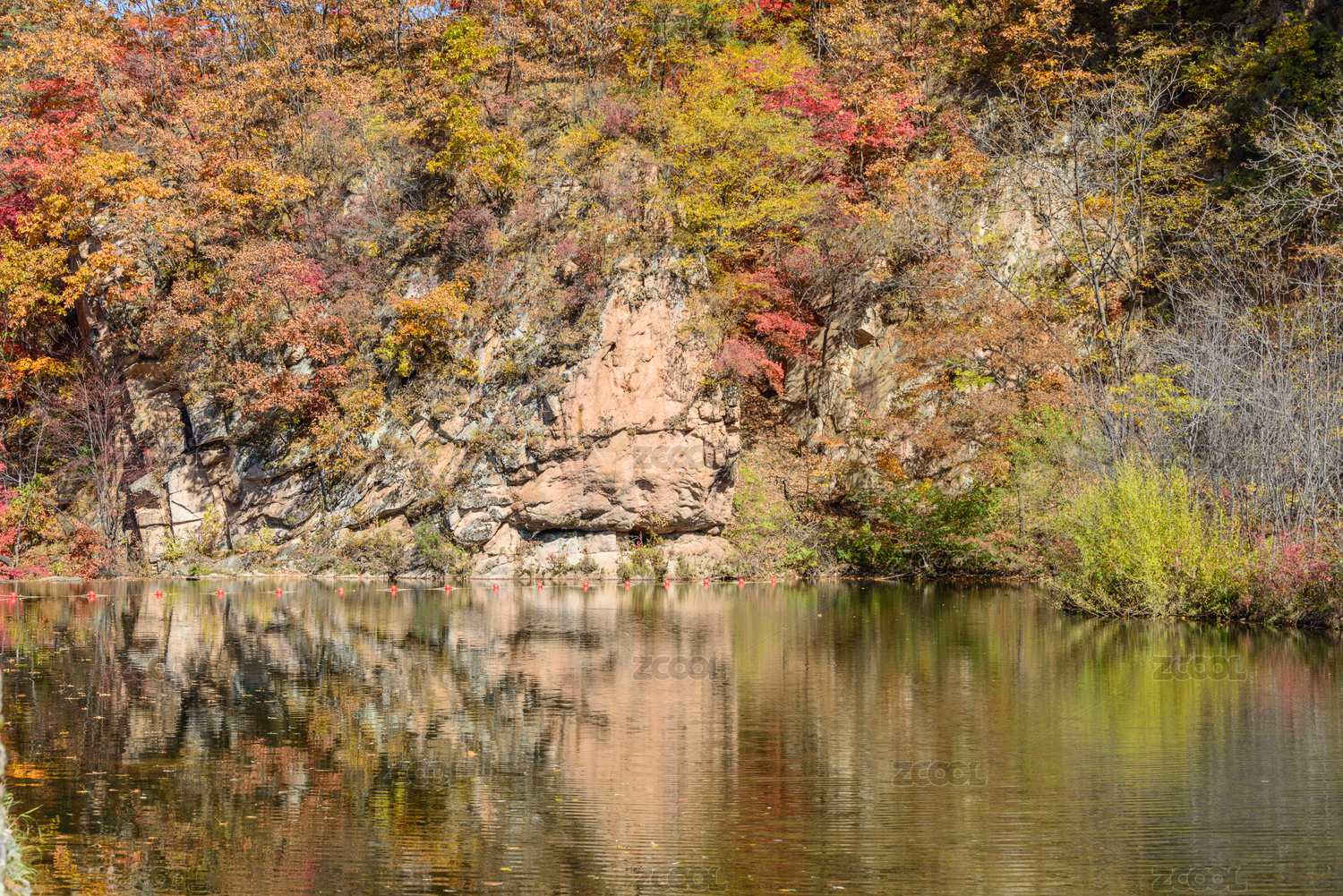 辽宁本溪大石湖风景名胜区秋天红枫景色