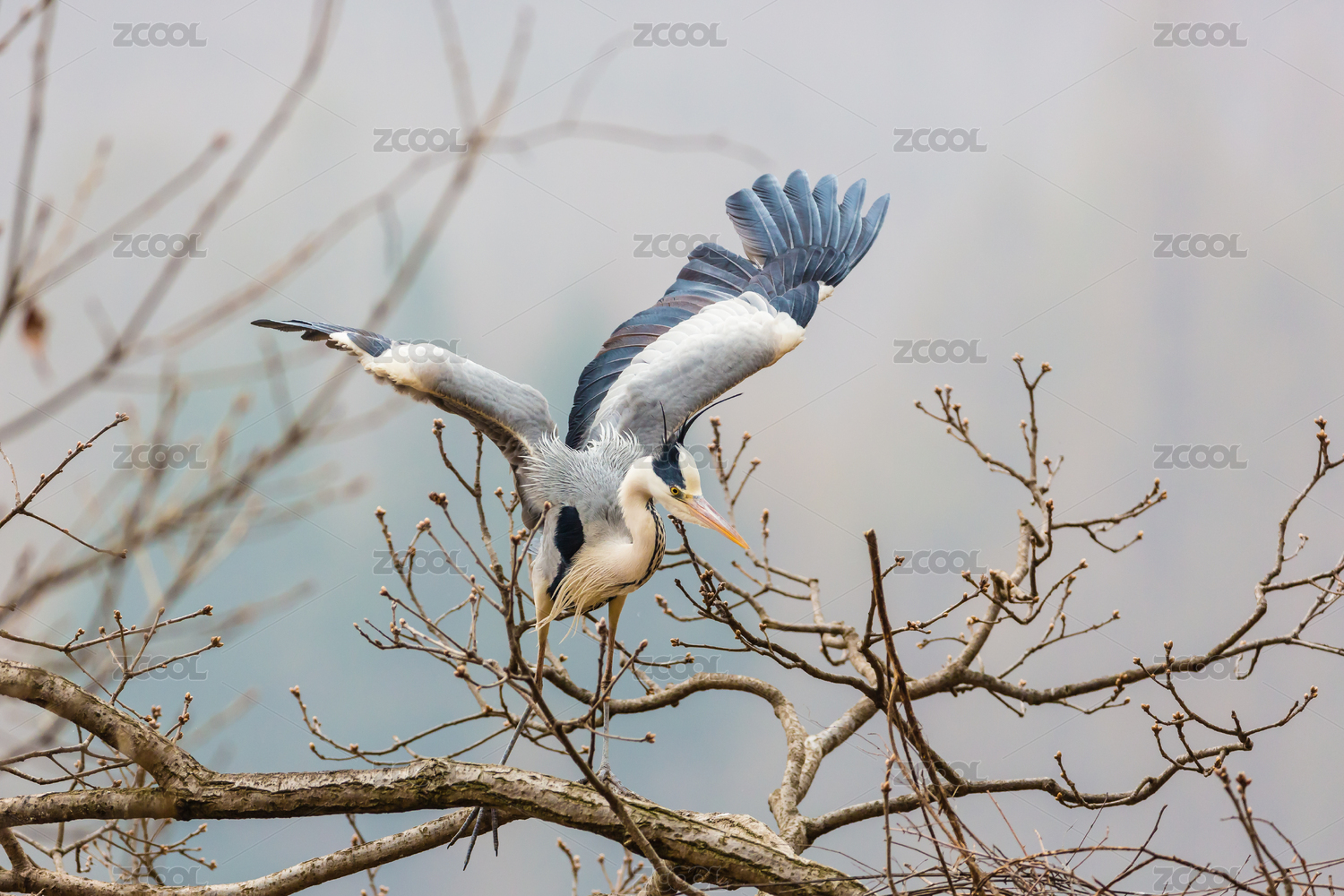 松树上的苍鹭