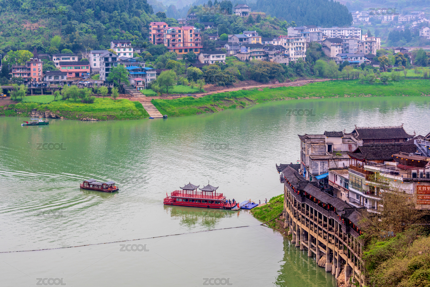 中国四川南充市蓬安县嘉陵江边的周子古镇