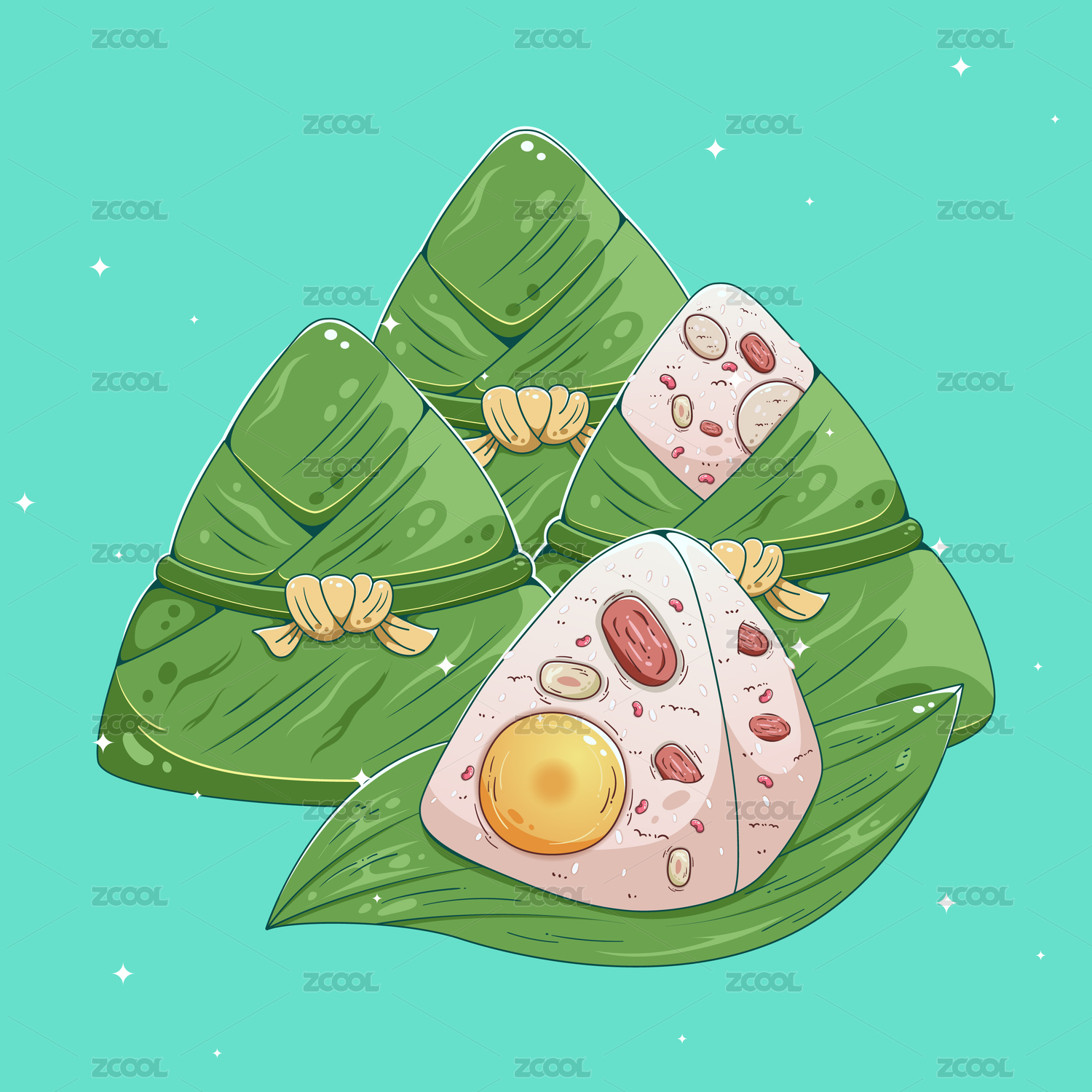 卡通端午节粽子鸭蛋黄