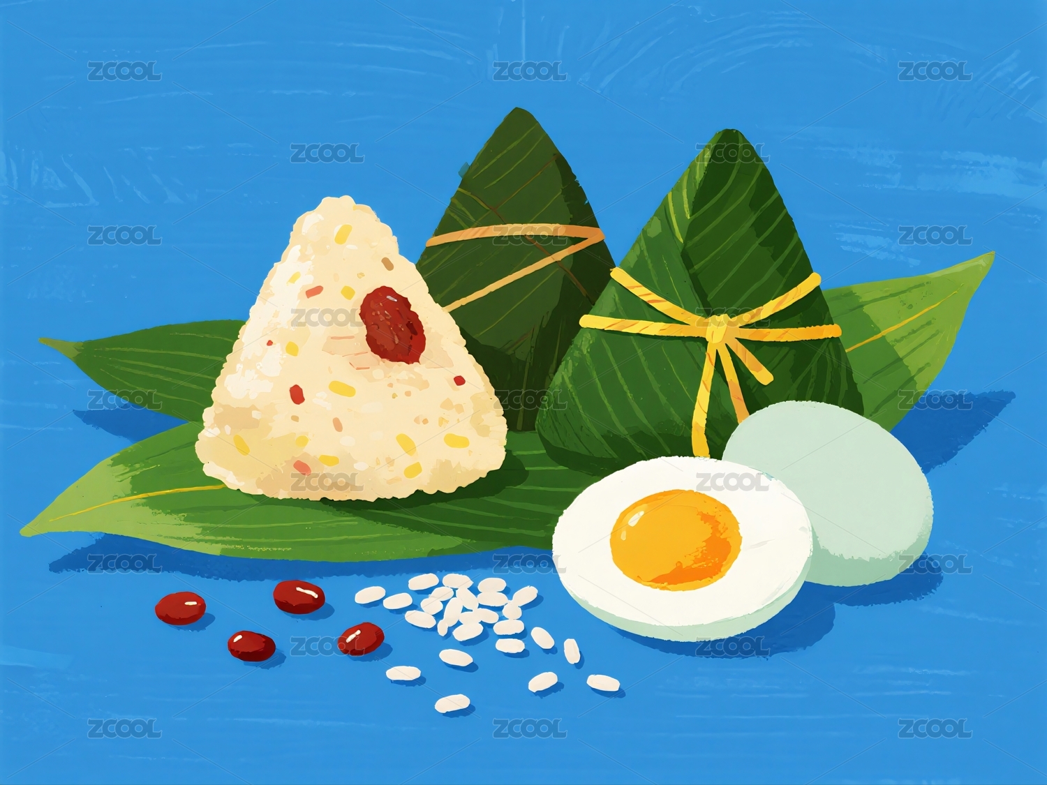 国风插画端午节美食粽子咸蛋
