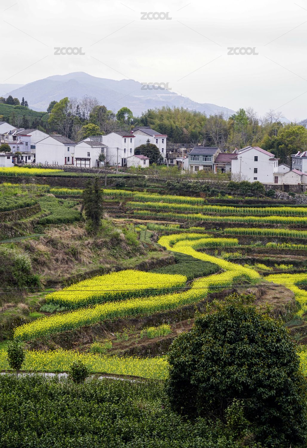 中国安徽省绩溪县家朋乡尚村梯田油菜花