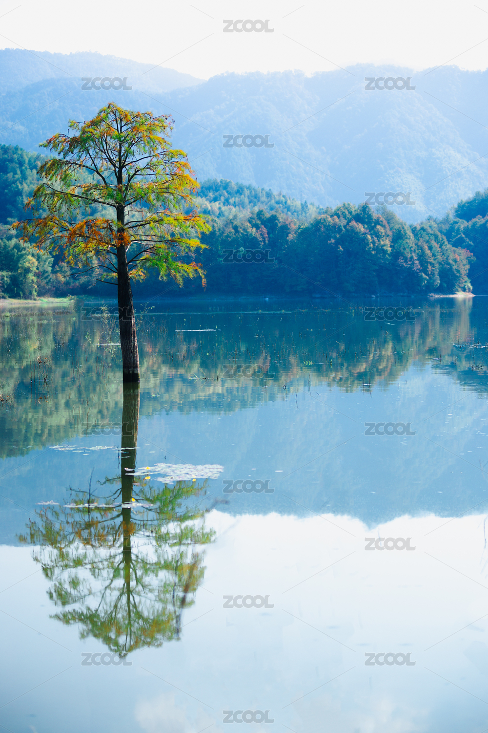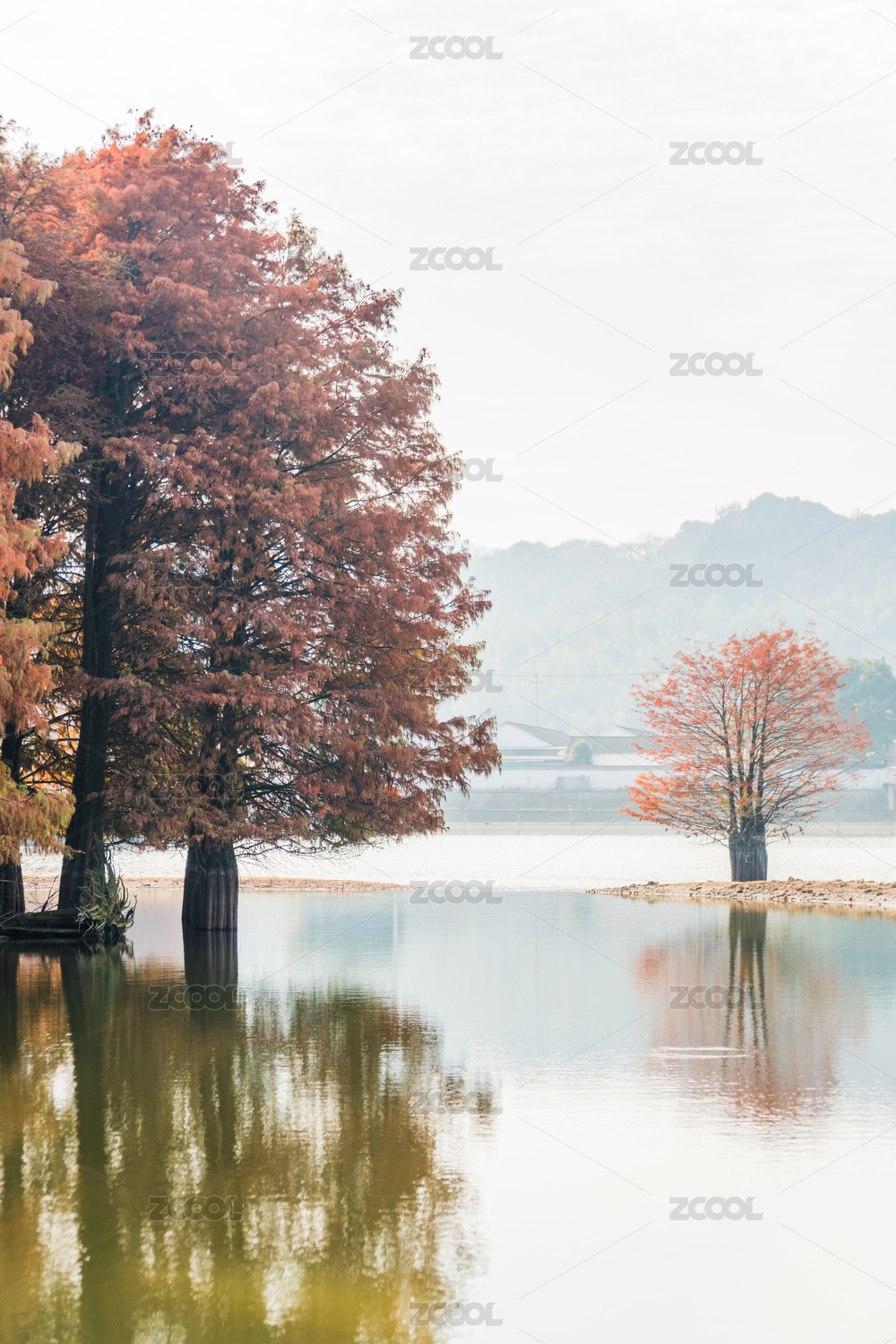 绍兴市石井水库中的水杉林风景