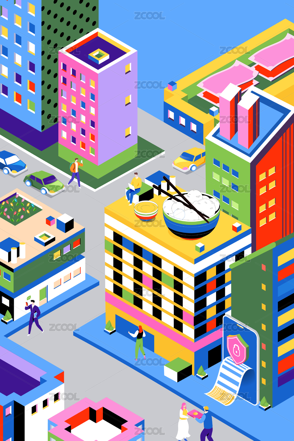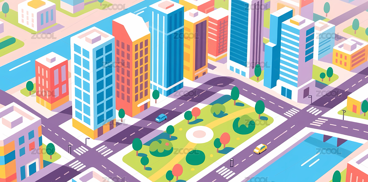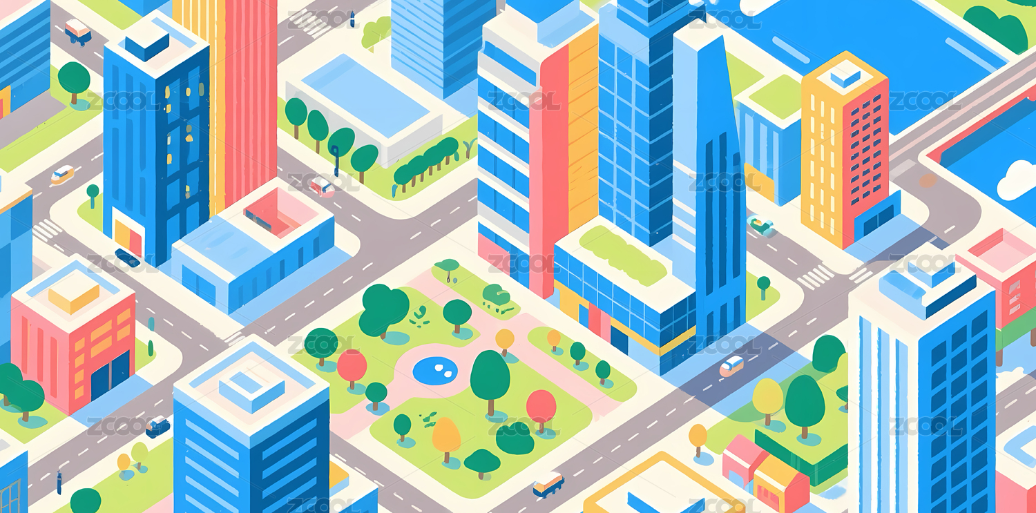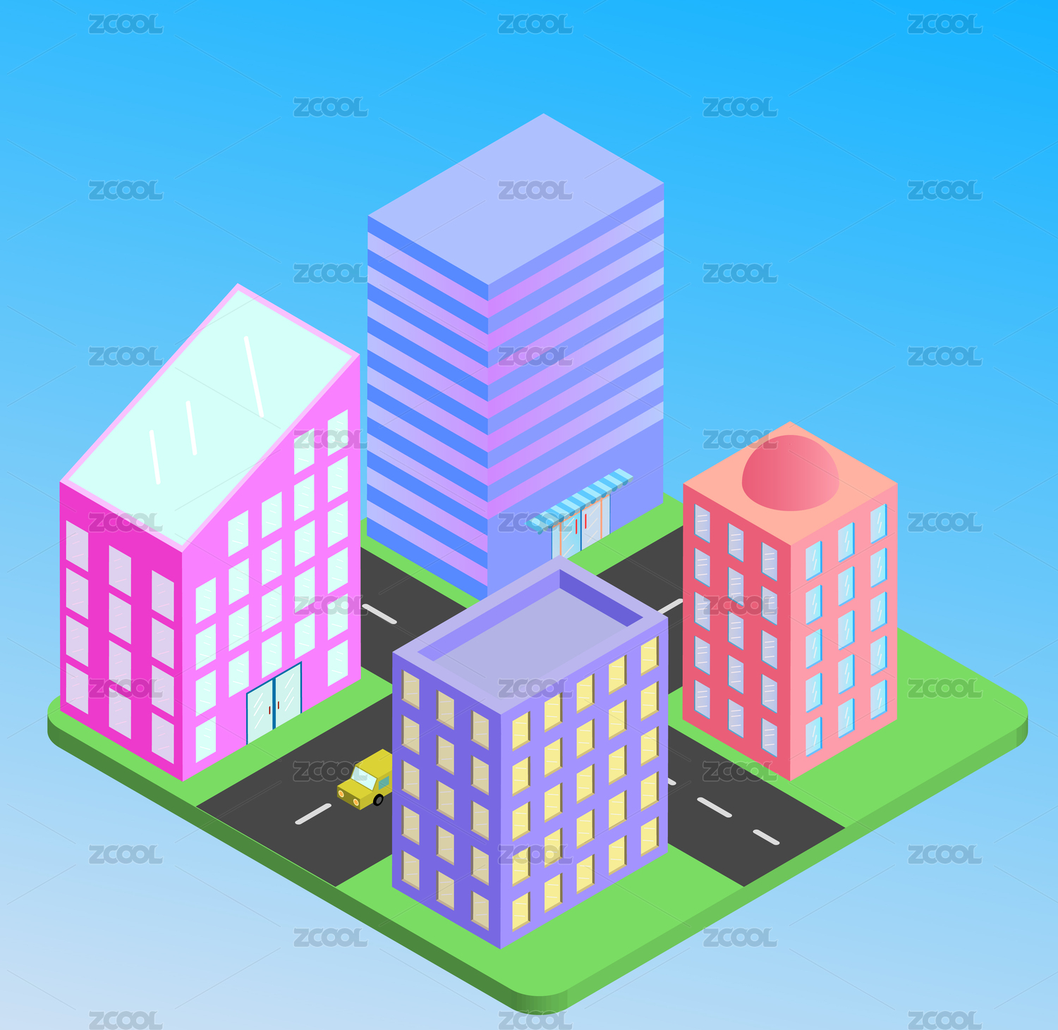 卡通智能城市绿色建筑等距矢量插图背景素材