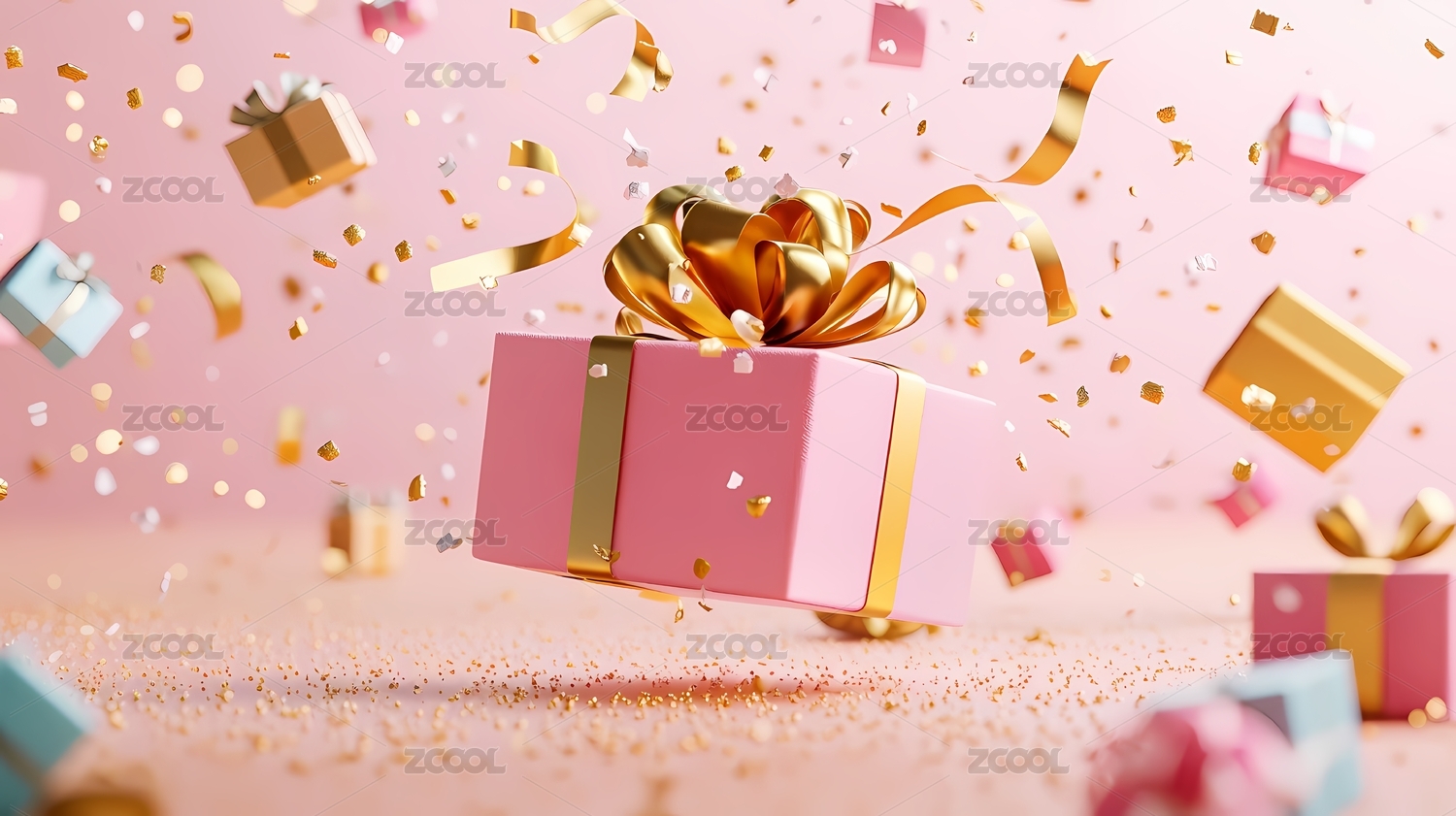 DXCZ202401,电商,礼物,背景,金币,购物,海报,纯色,金色,粉色