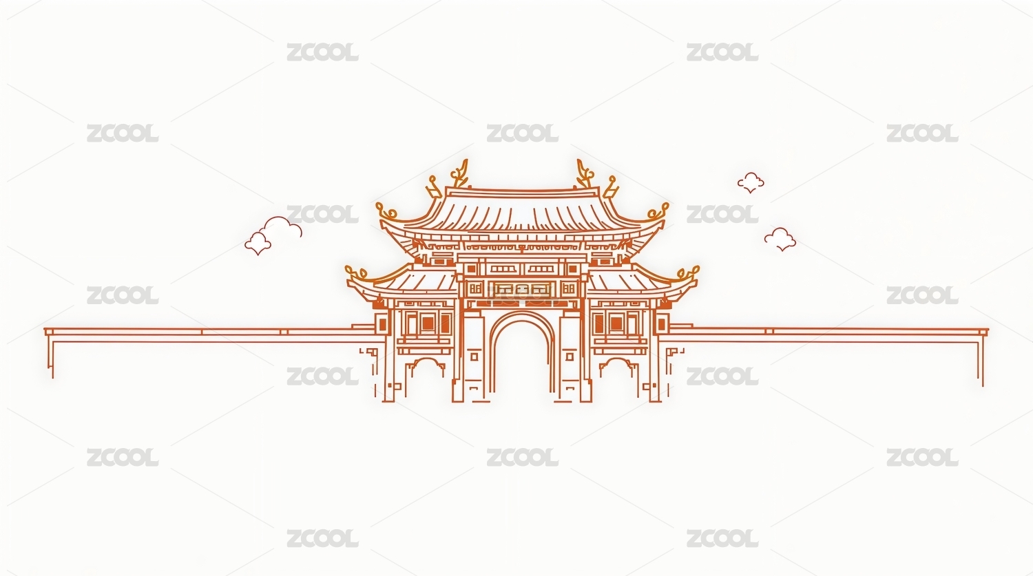牌坊门楼手绘插画