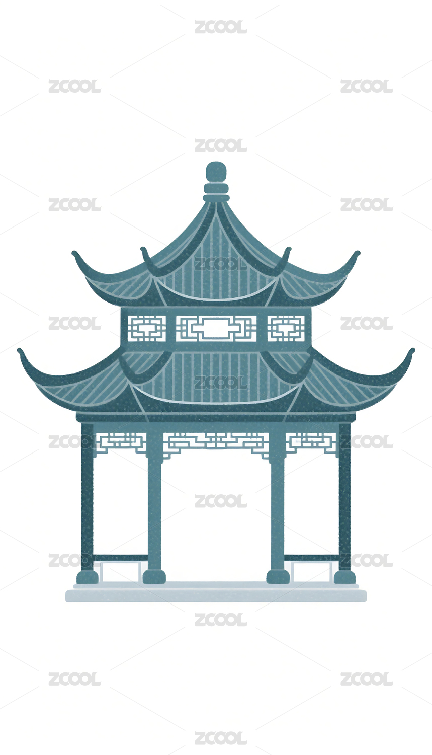 国潮风格亭子插画素材