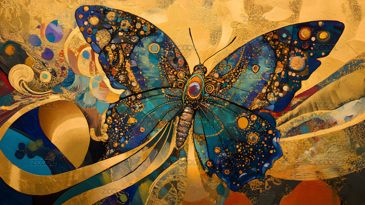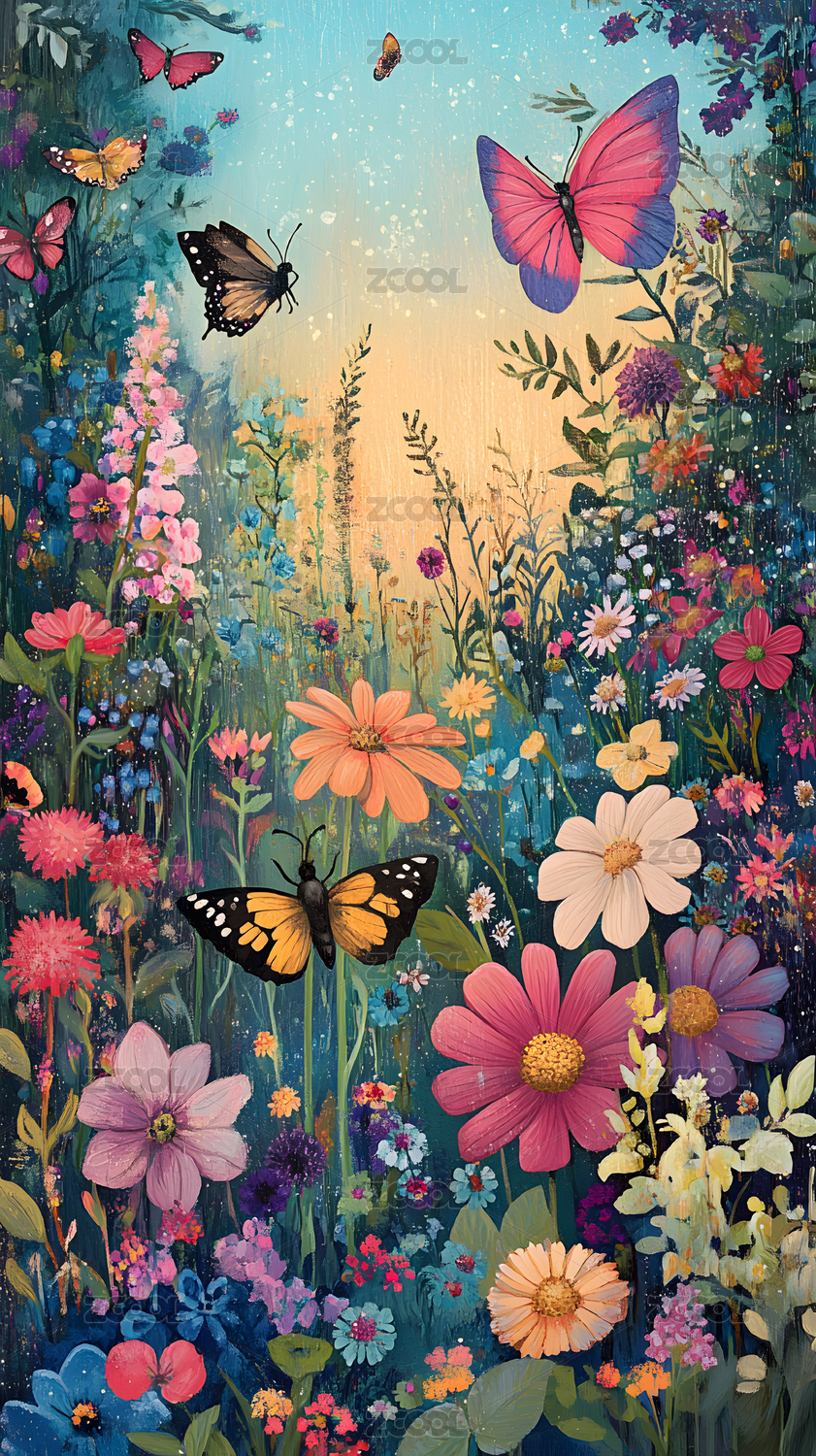 复古,蝴蝶,花,植物,自然,艺术,油画,抽象,花束,插图