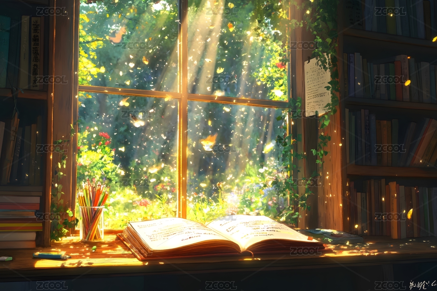 午后阳光下的书房阅读时光