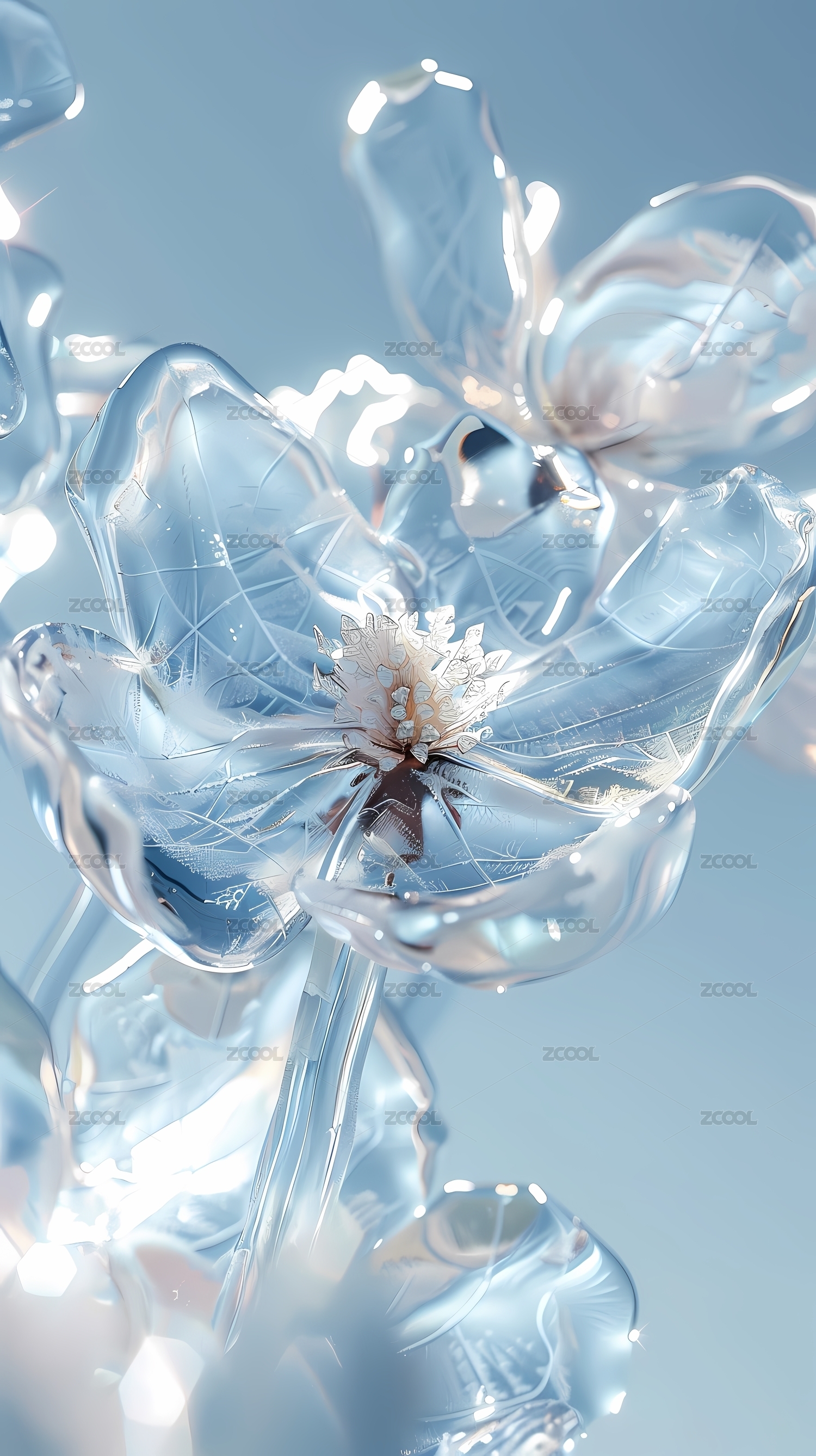 数码科技玻璃水晶花朵莲花抽象海报背景