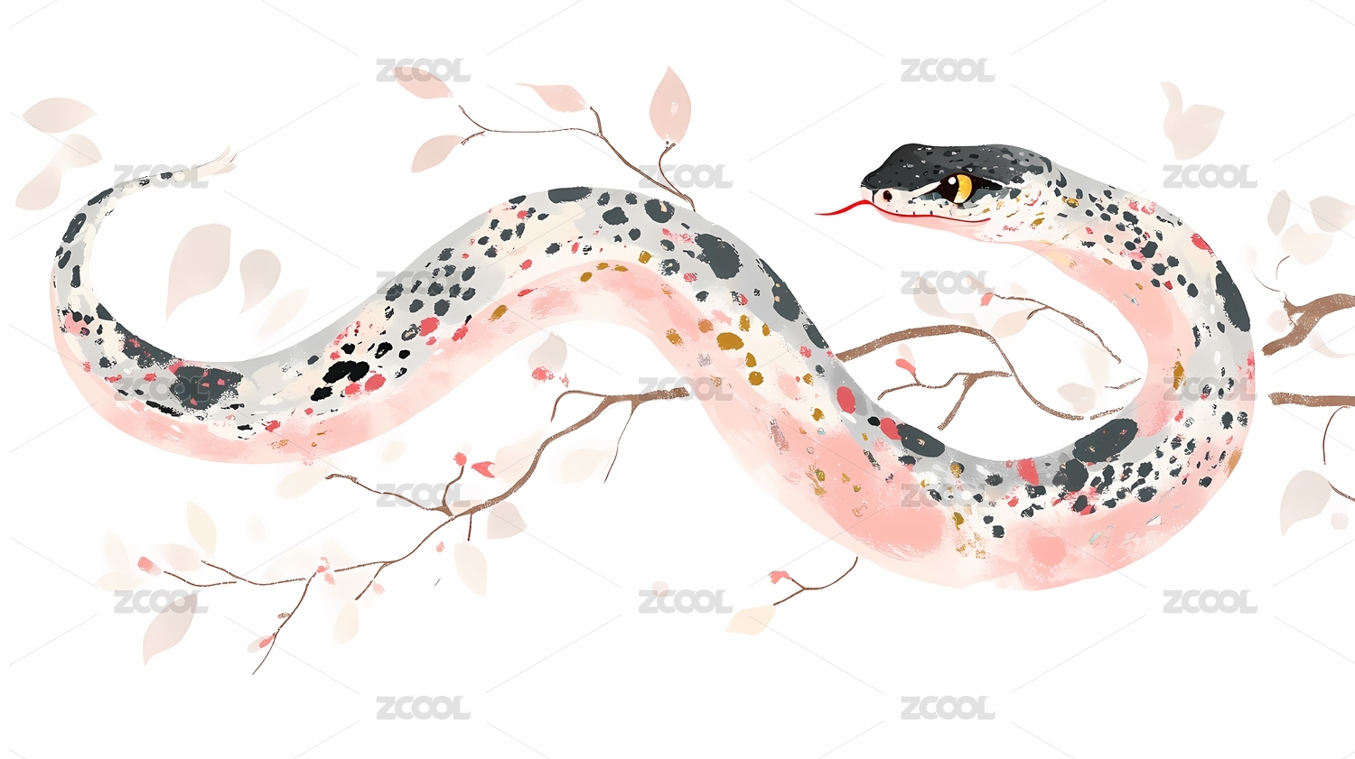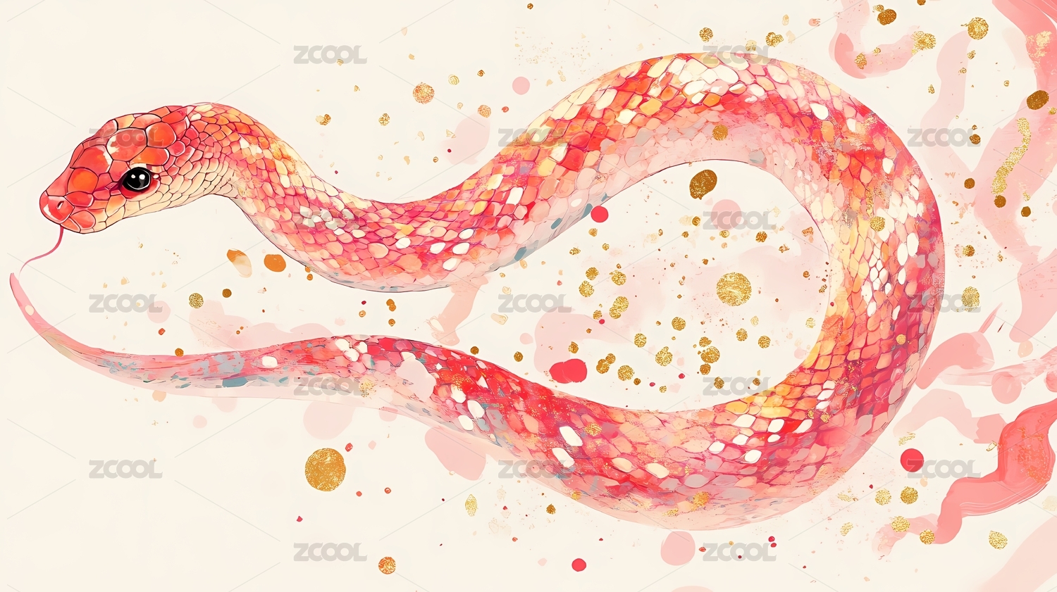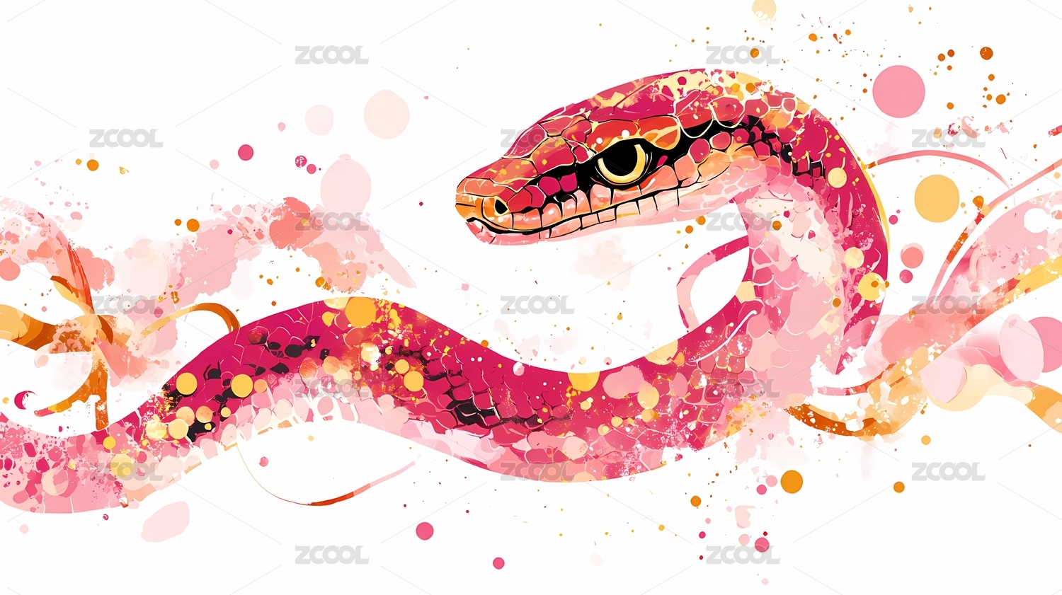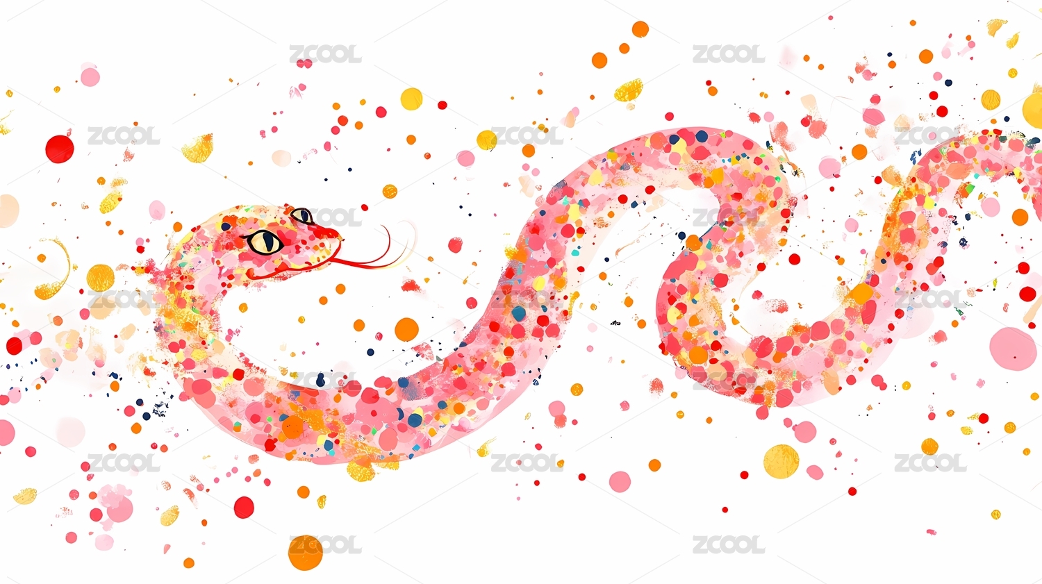 AIGCTP2024,可爱,中国,蛇,绘画,波点,艺术,抽象,线条,插图