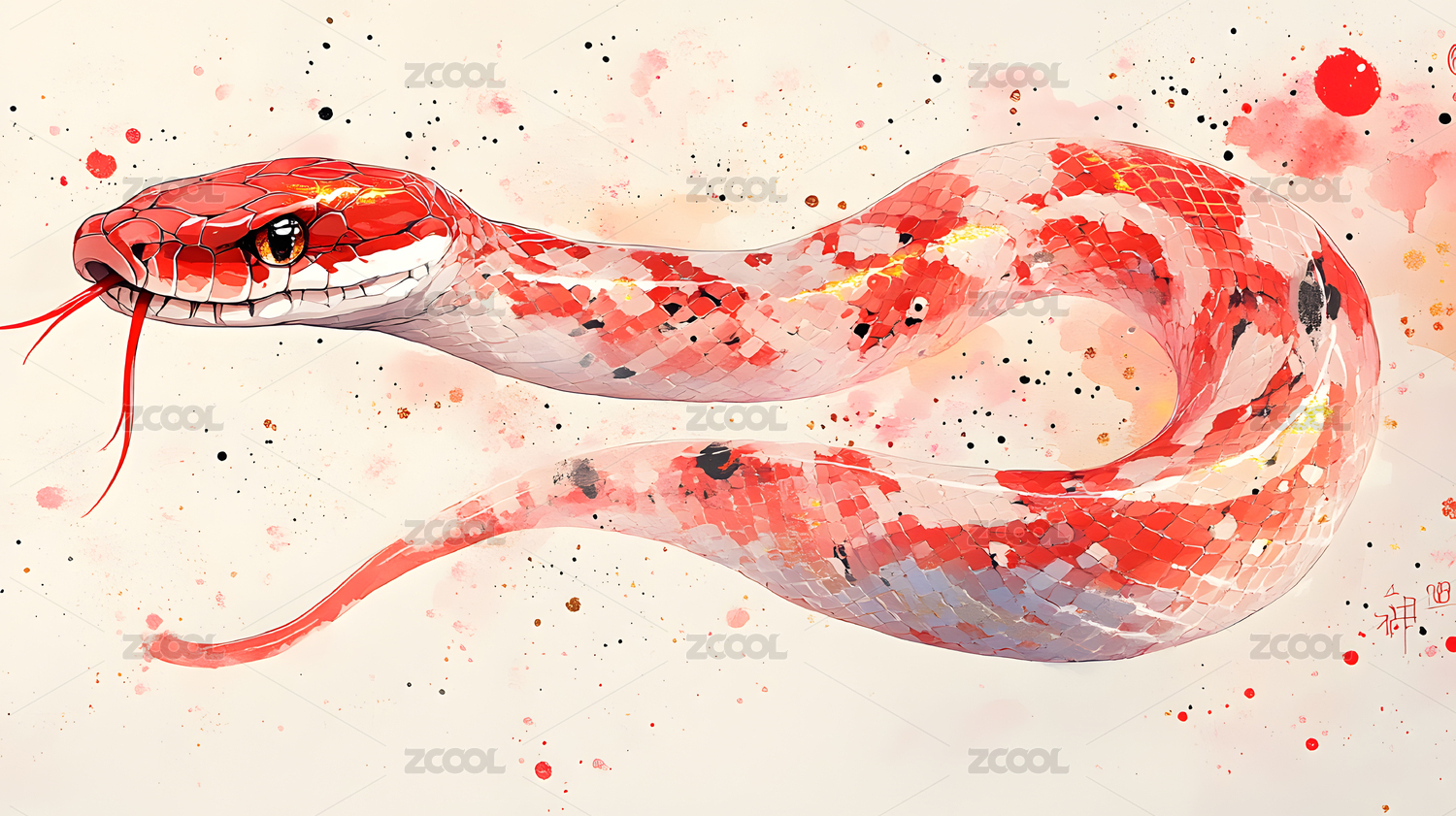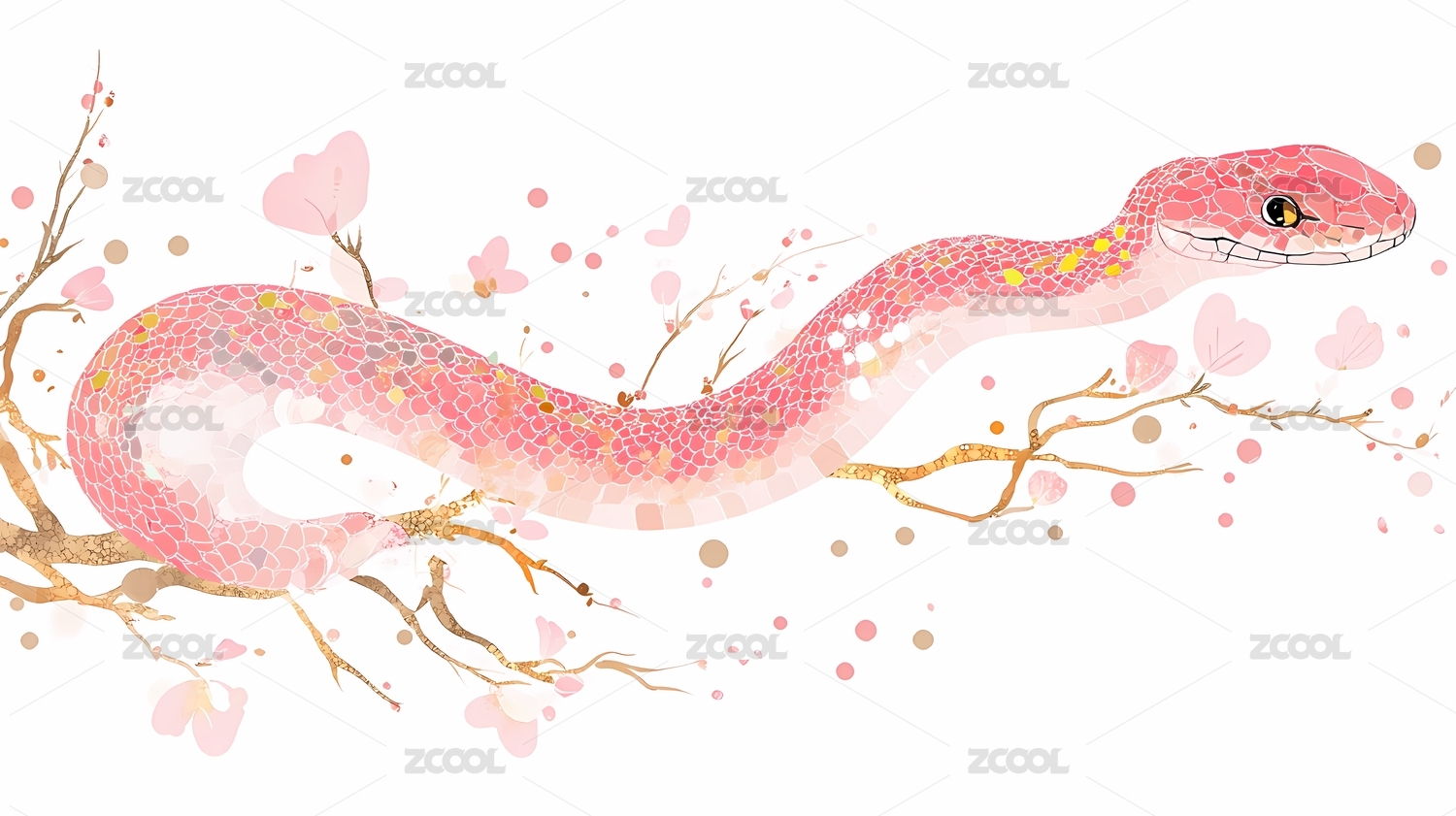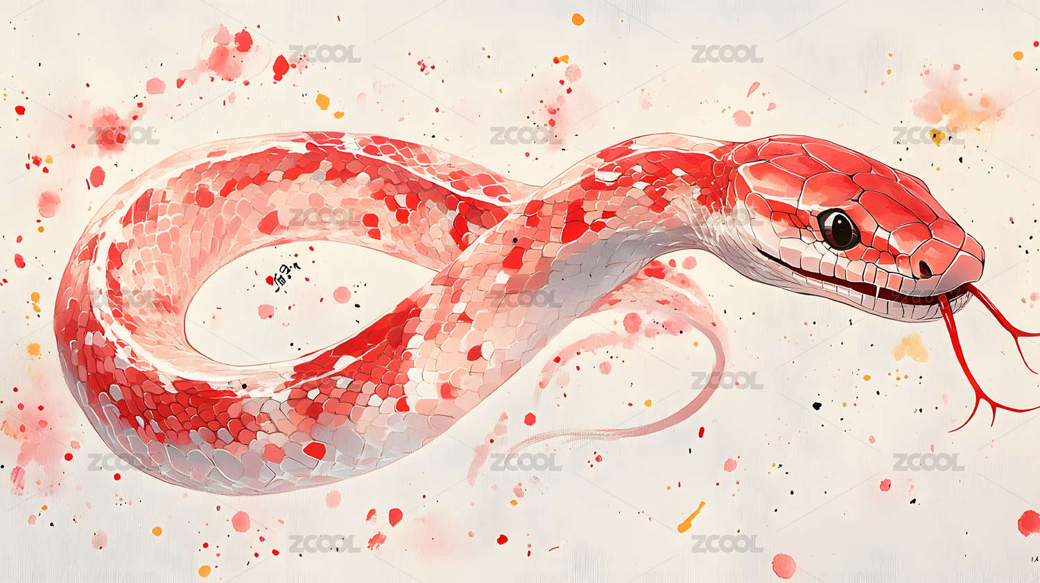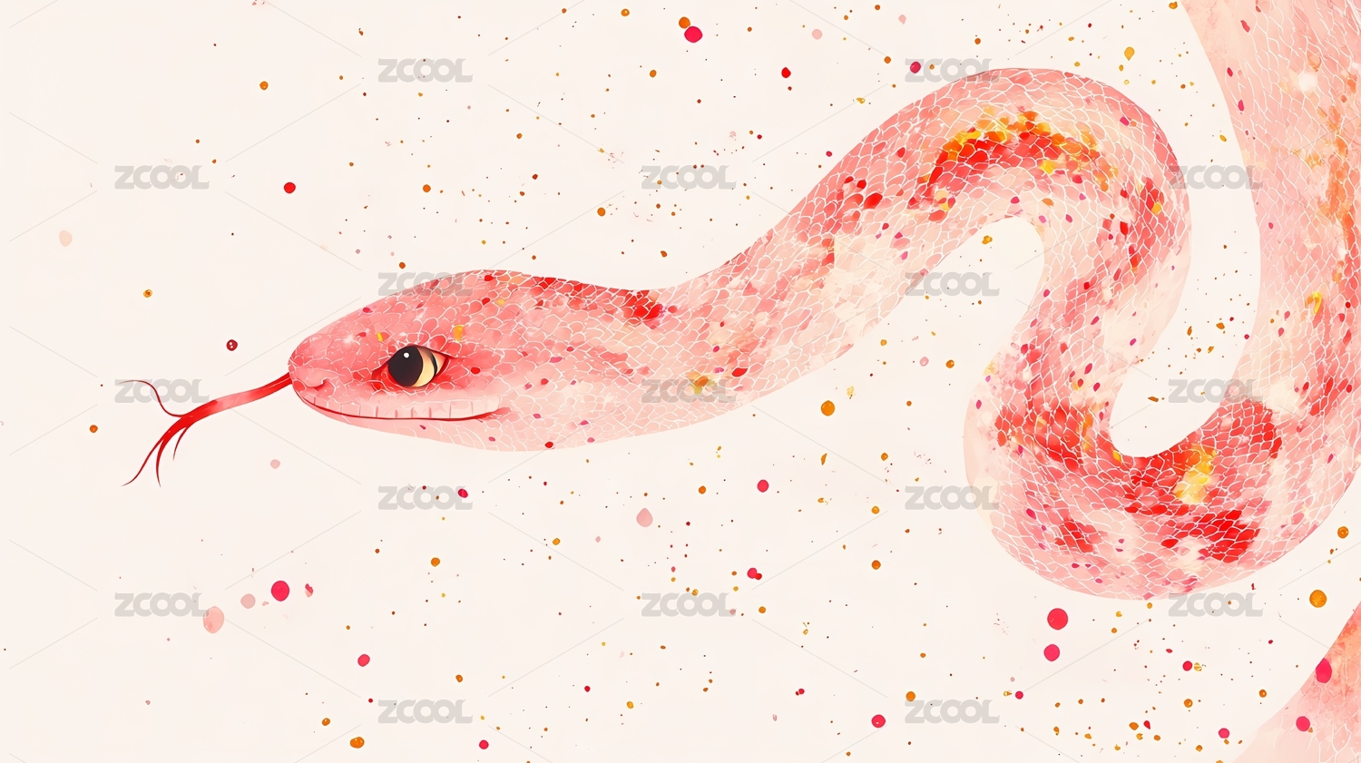 AIGCTP2024,可爱,中国,蛇,绘画,波点,艺术,抽象,线条,插图