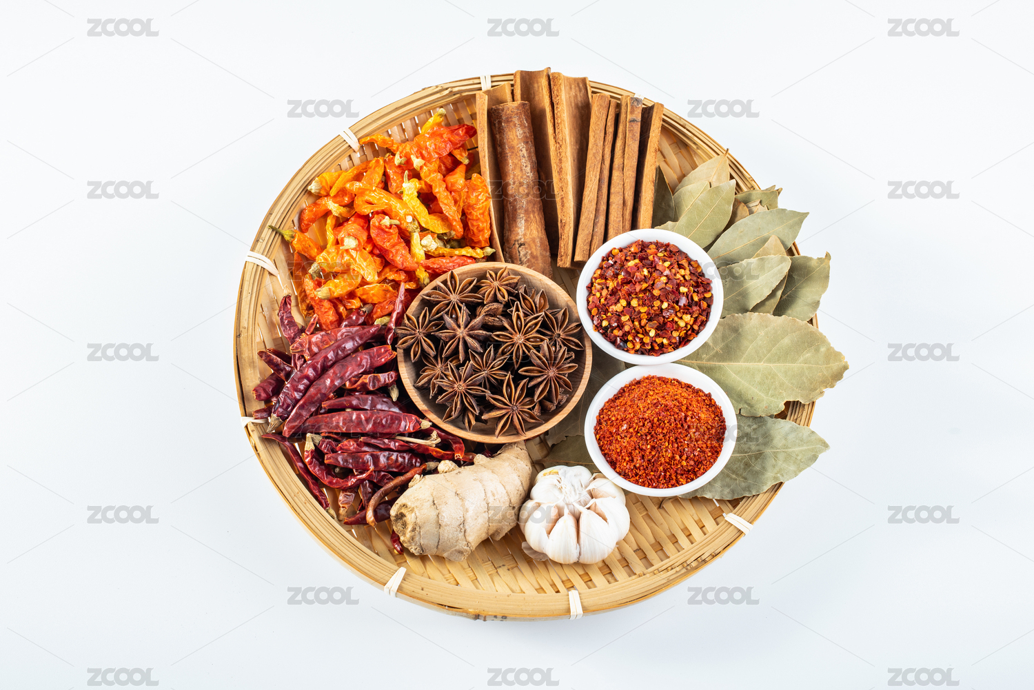 一盘中餐常用香辣烹饪调料香料,草果特写