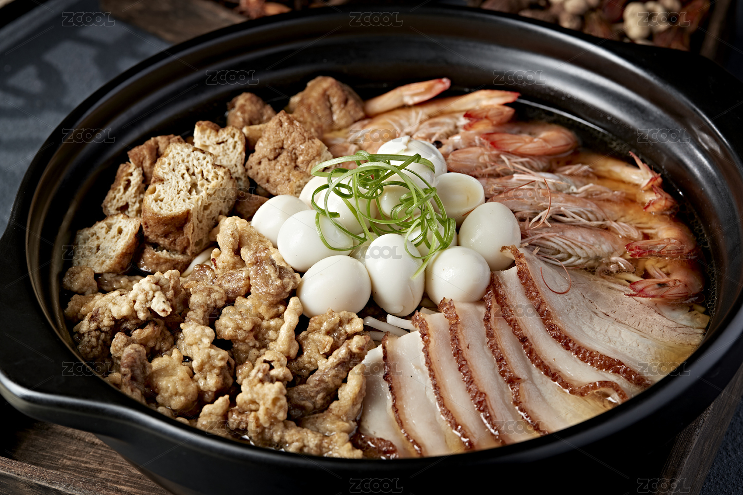 蛋饺,肉片,猪皮,贡丸,大虾,香菇,鸡肉,高汤,一品全家福,鲍鱼全家福