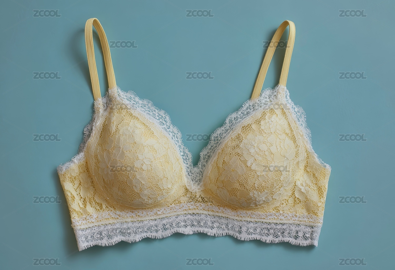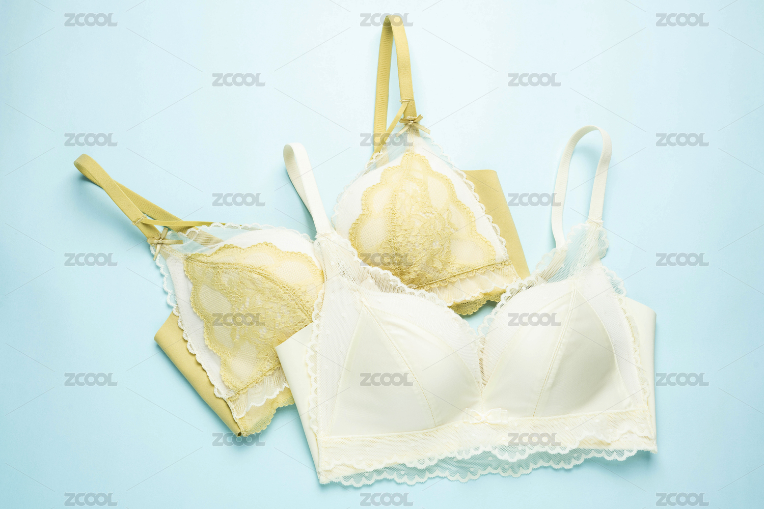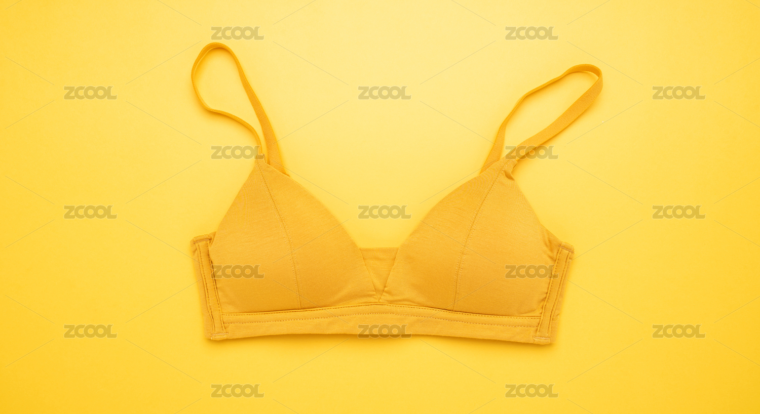 黄色背景上的纯棉内衣,女性时尚购物概念