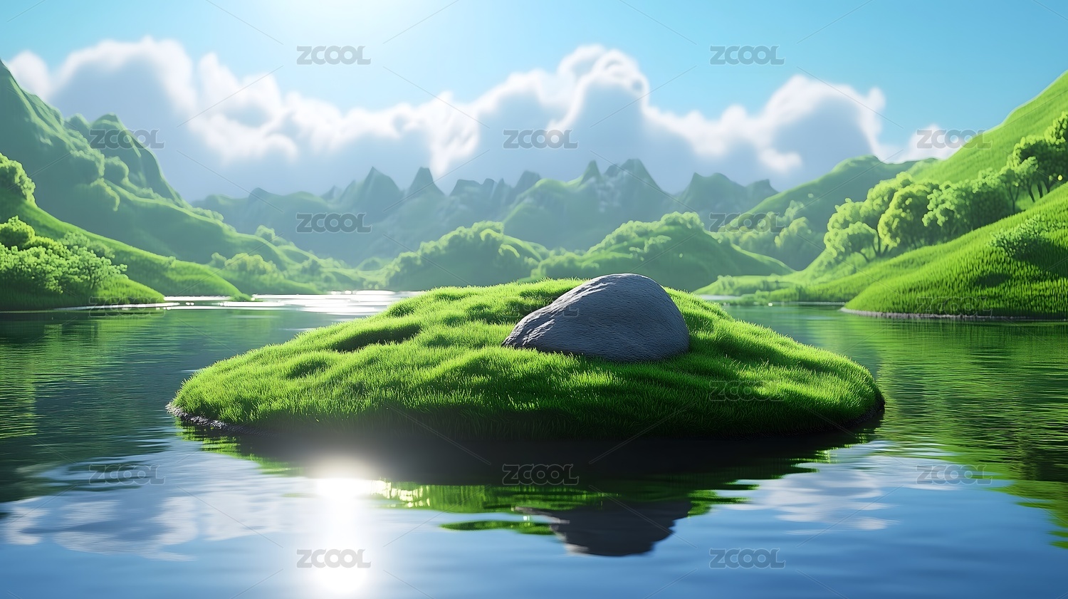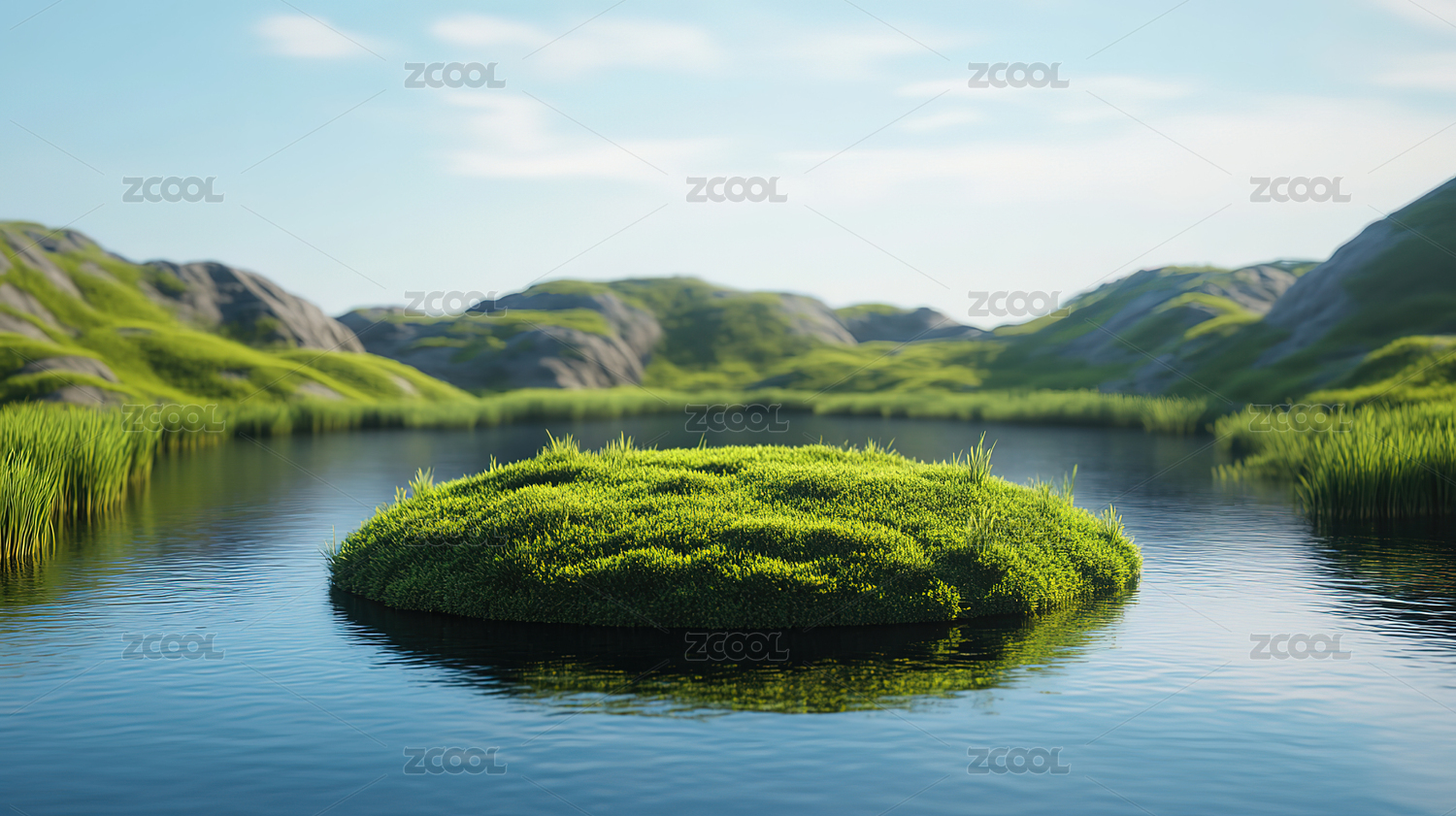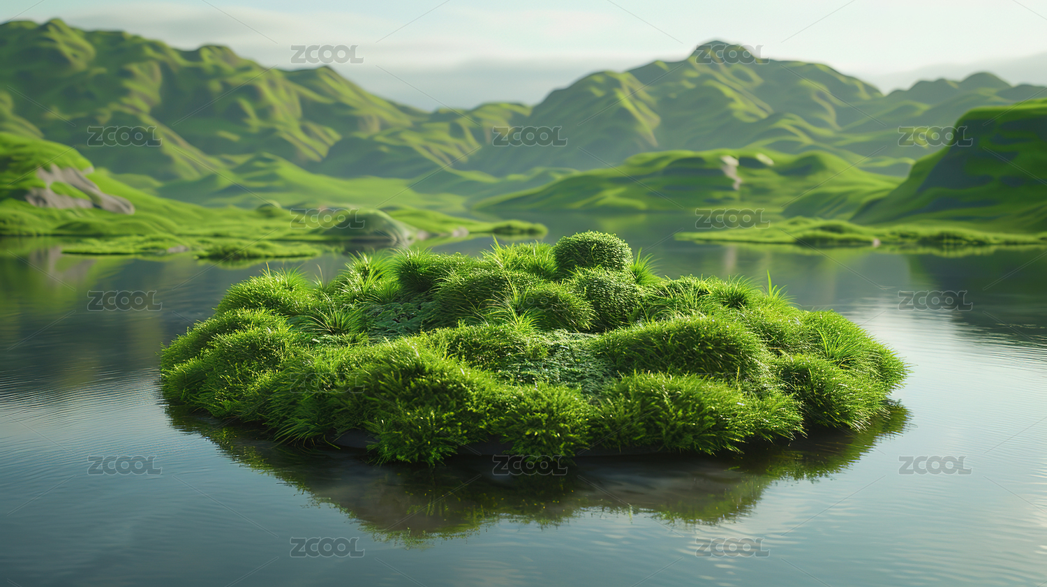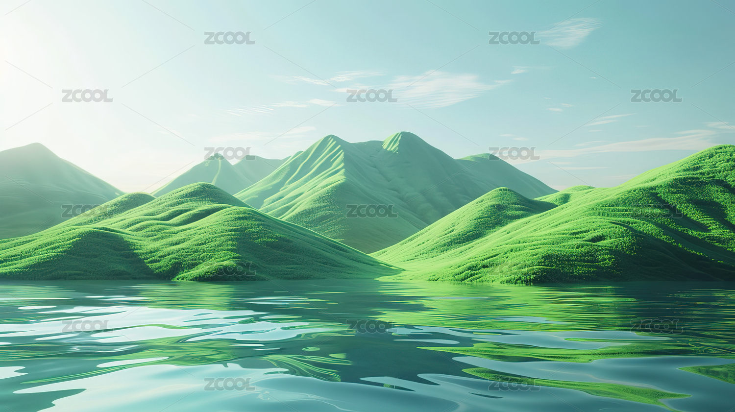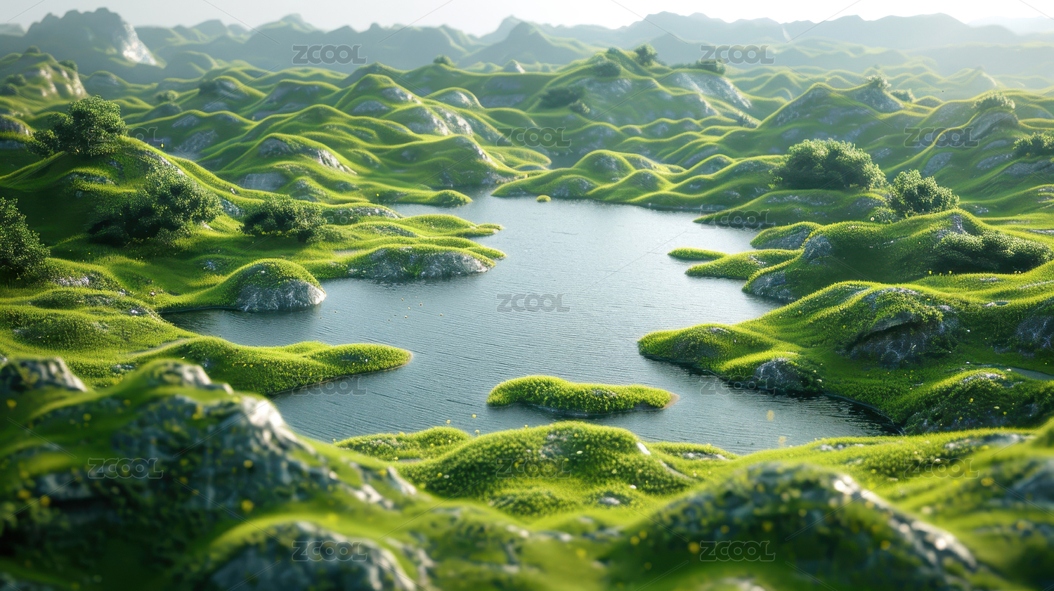 绿色,湖泊,山丘,自然,风光,草地,蓝天,远景,宁静,和平
