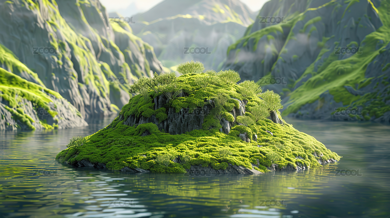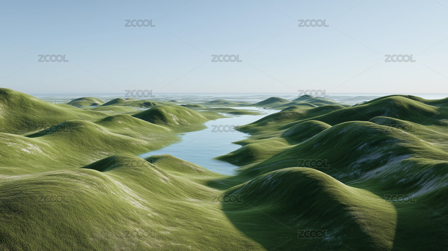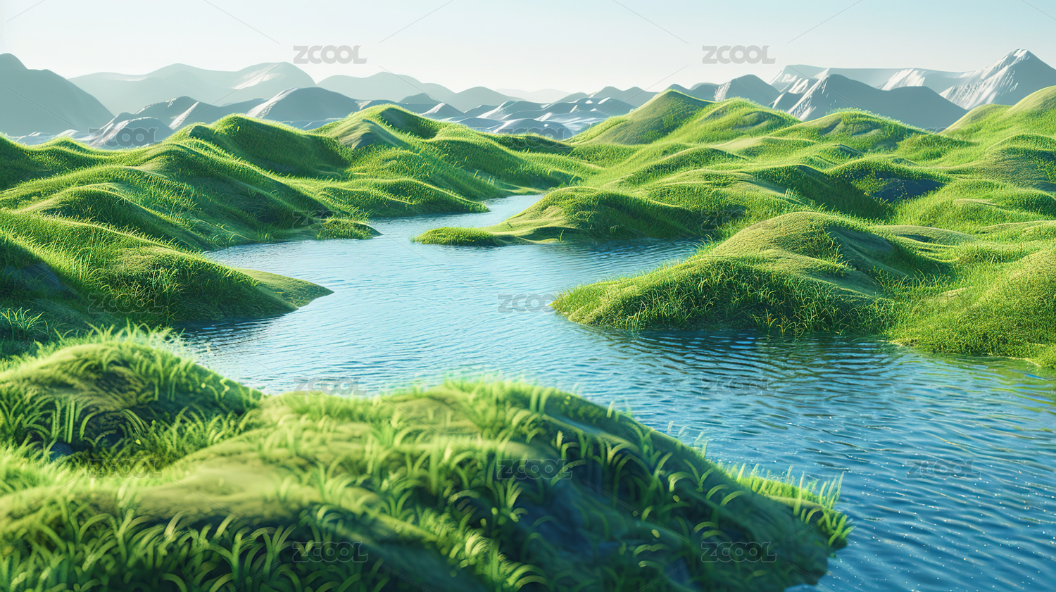 3D渲染山丘山脉高山大山山峰数字艺术插画