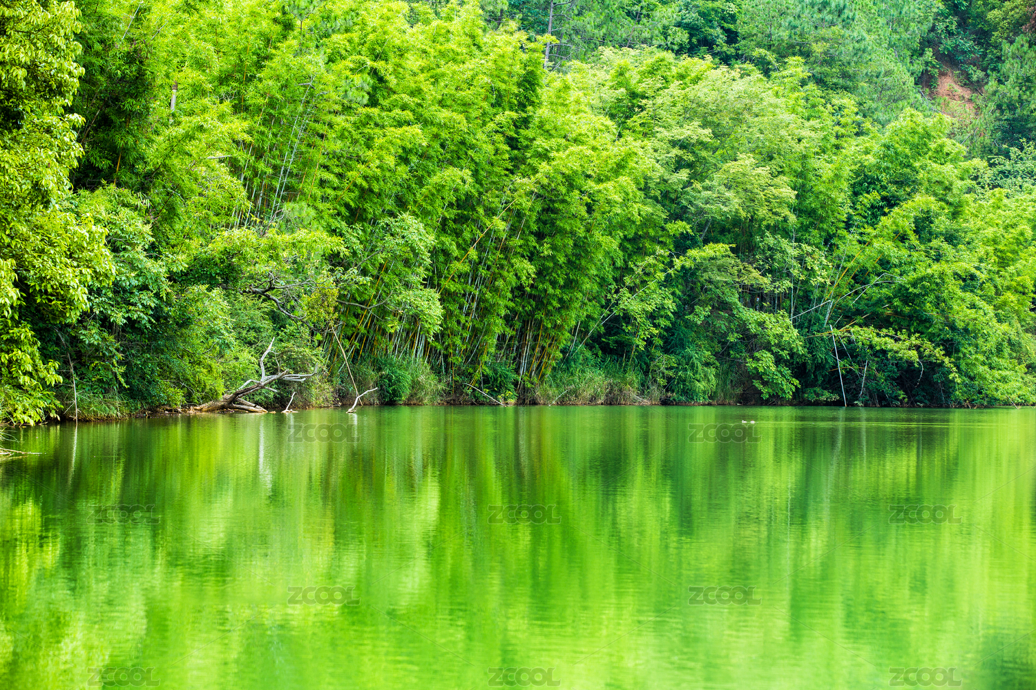 碧绿的水潭边茂密的森林,中国福建龙岩