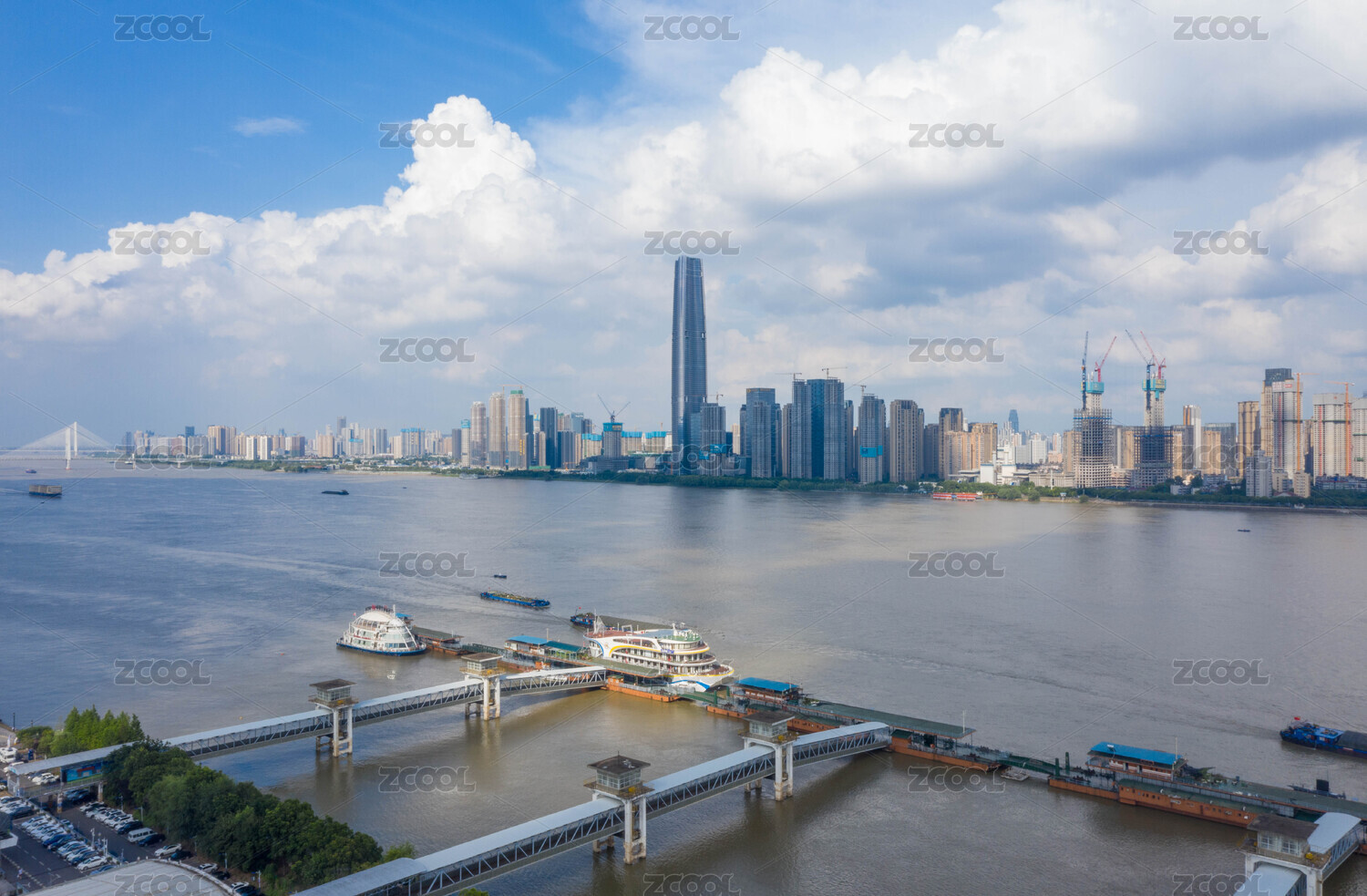 武汉最高楼武汉绿地中心与长江江面