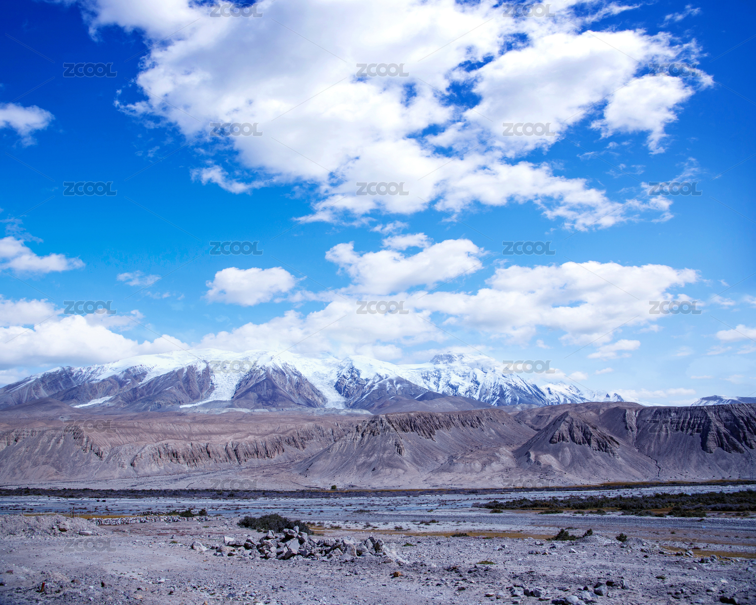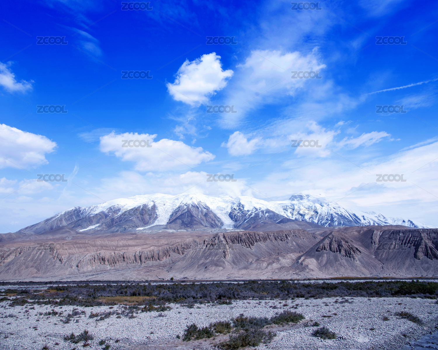 中国新疆喀什至塔县塔什库尔干河谷边的雪山