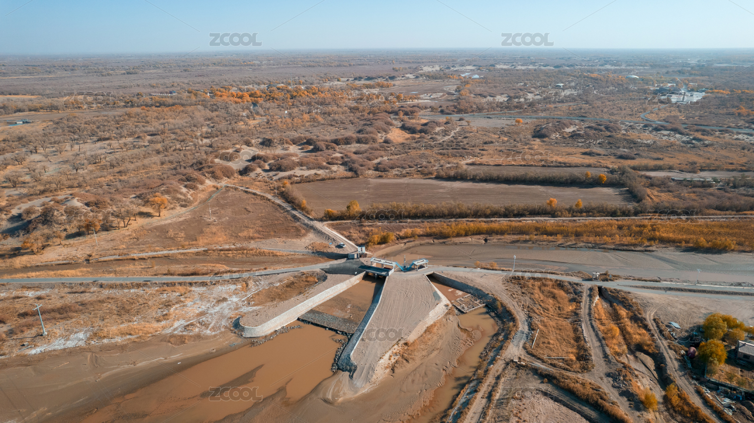 航拍内蒙古额济纳旗一道桥胡杨林风光