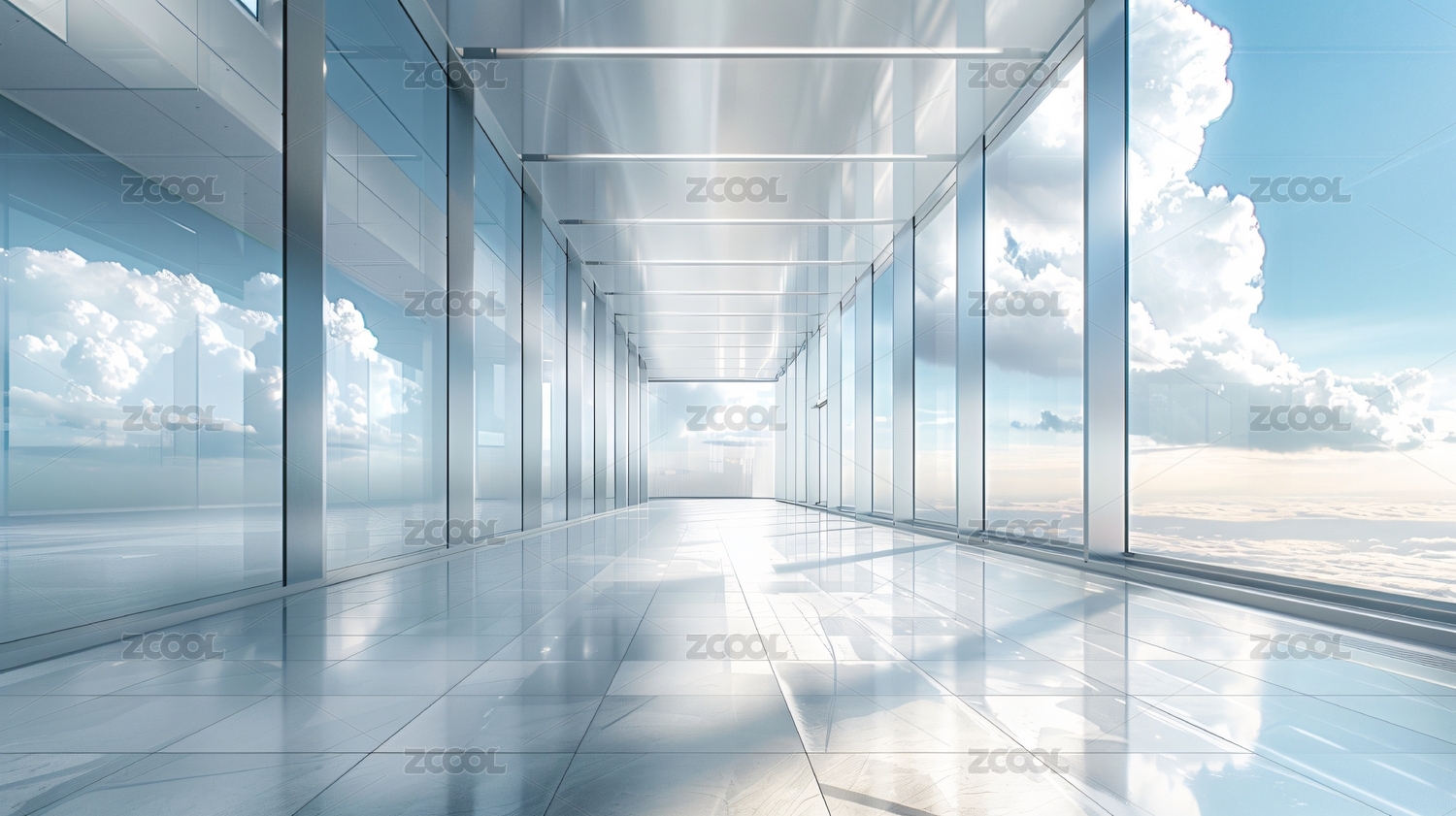 房子淡蓝色瓷砖走廊天空云朵3D插画