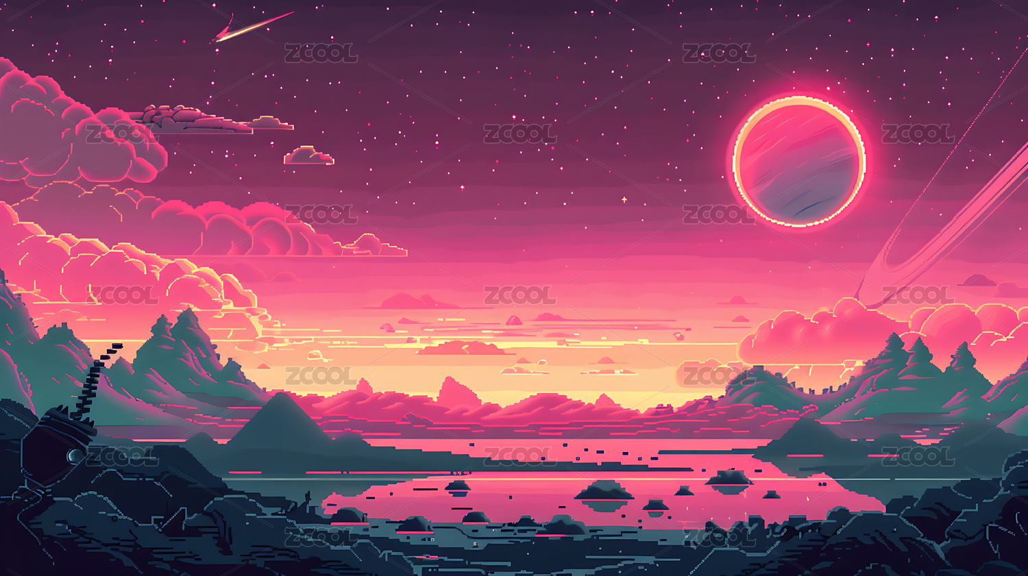 科幻,渐变,风景,自然,星云,星空,湖面,月亮