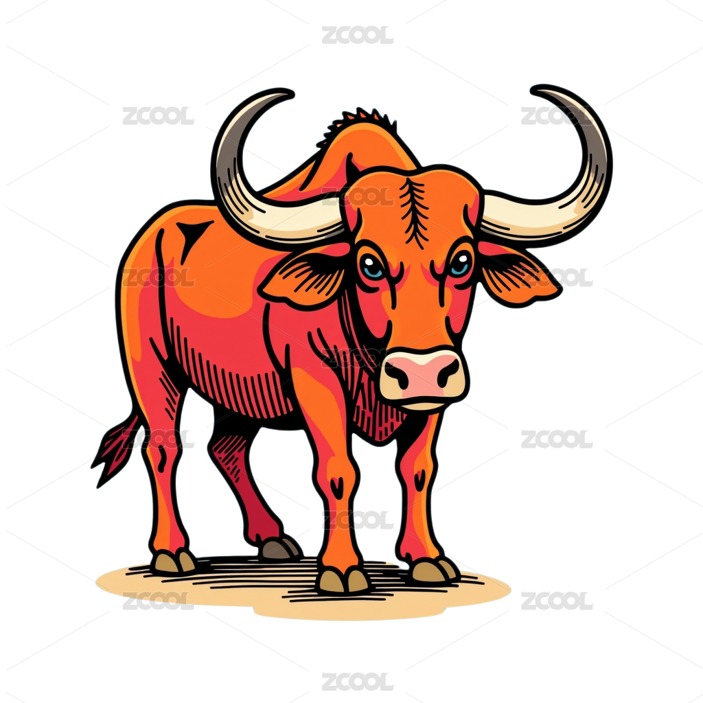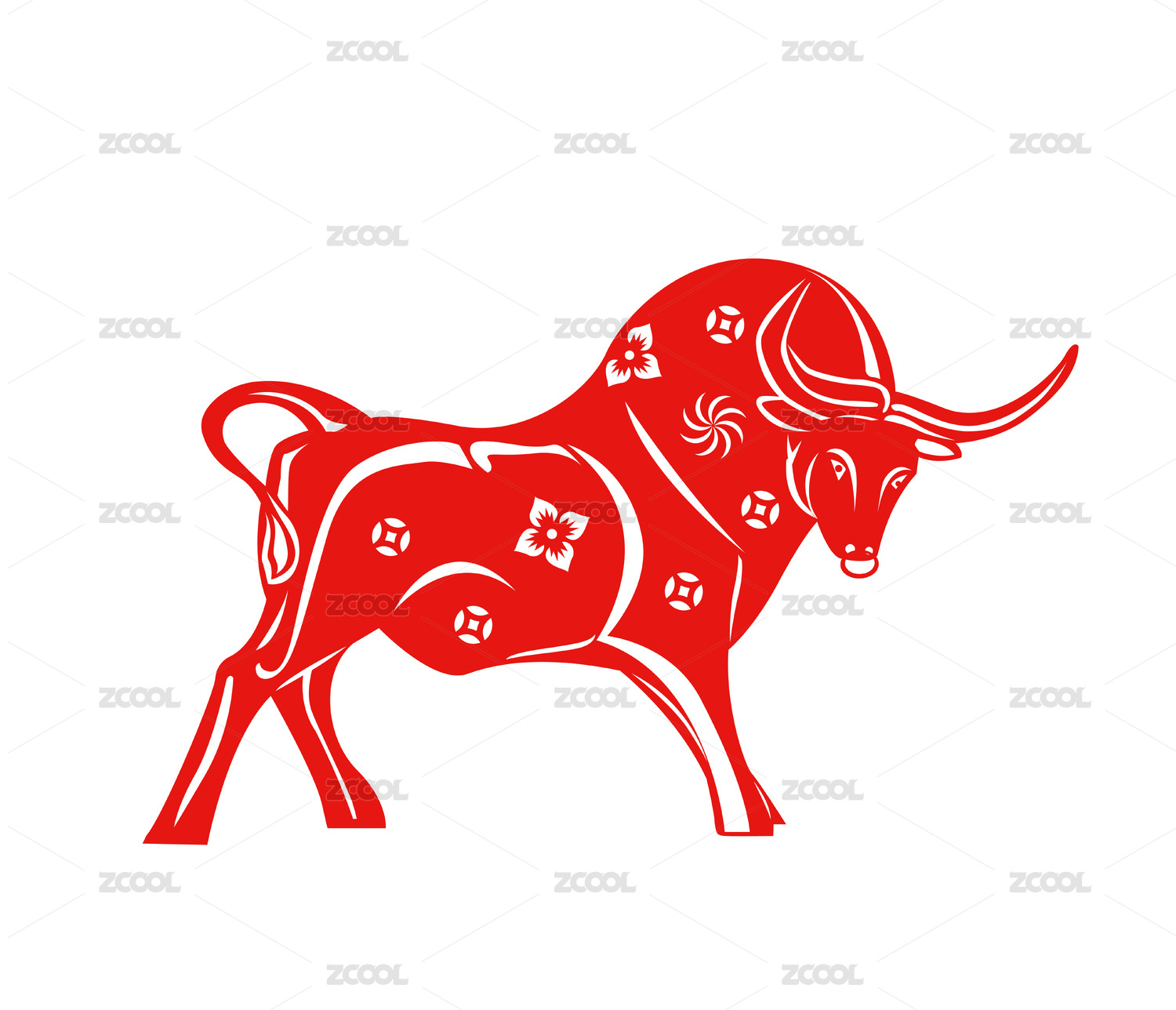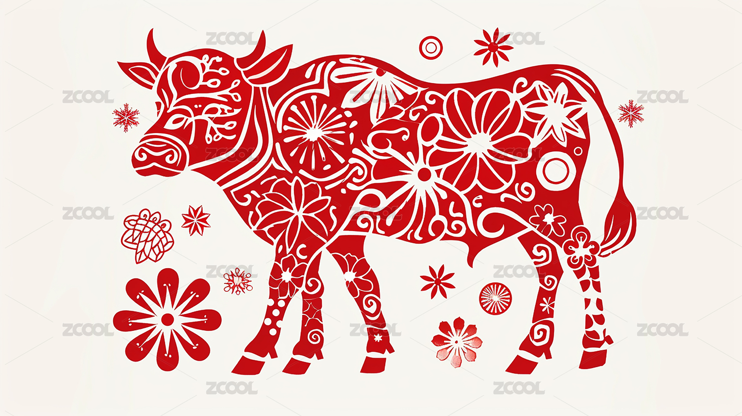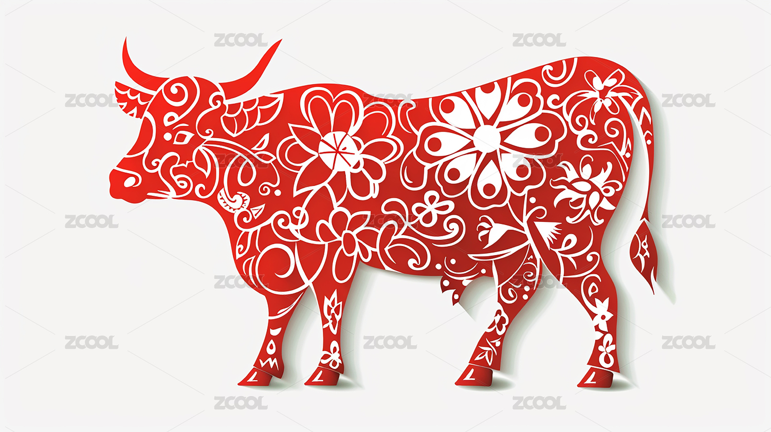 十二生肖,生肖,插画,牛,牛年,动物,装饰,花,图案,红色