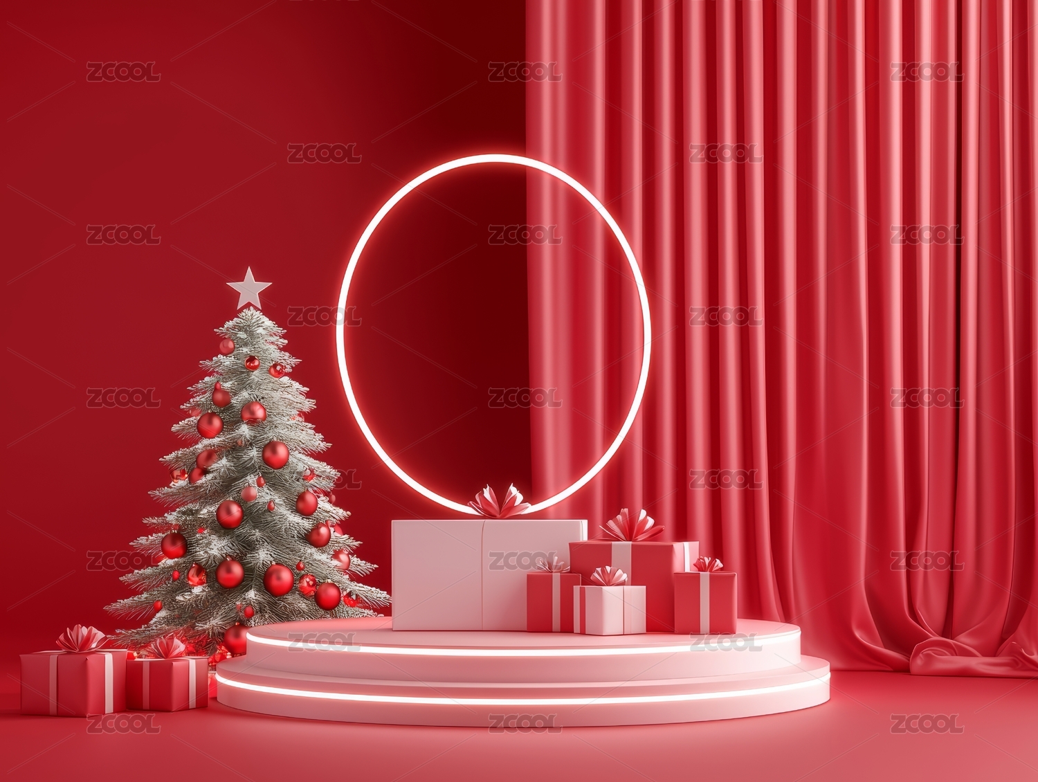 3D圣诞节礼物红色圆形拱门电商产品展台