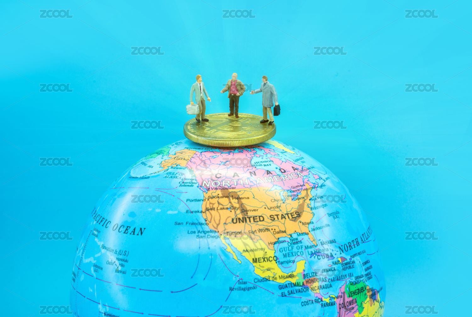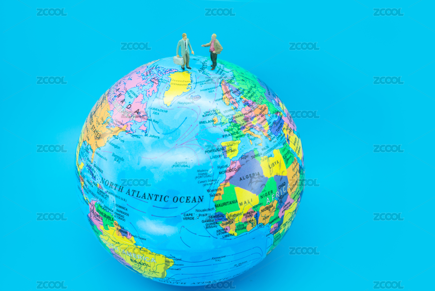 地球仪局部特写和底部桌子上摊开的地图及放大镜