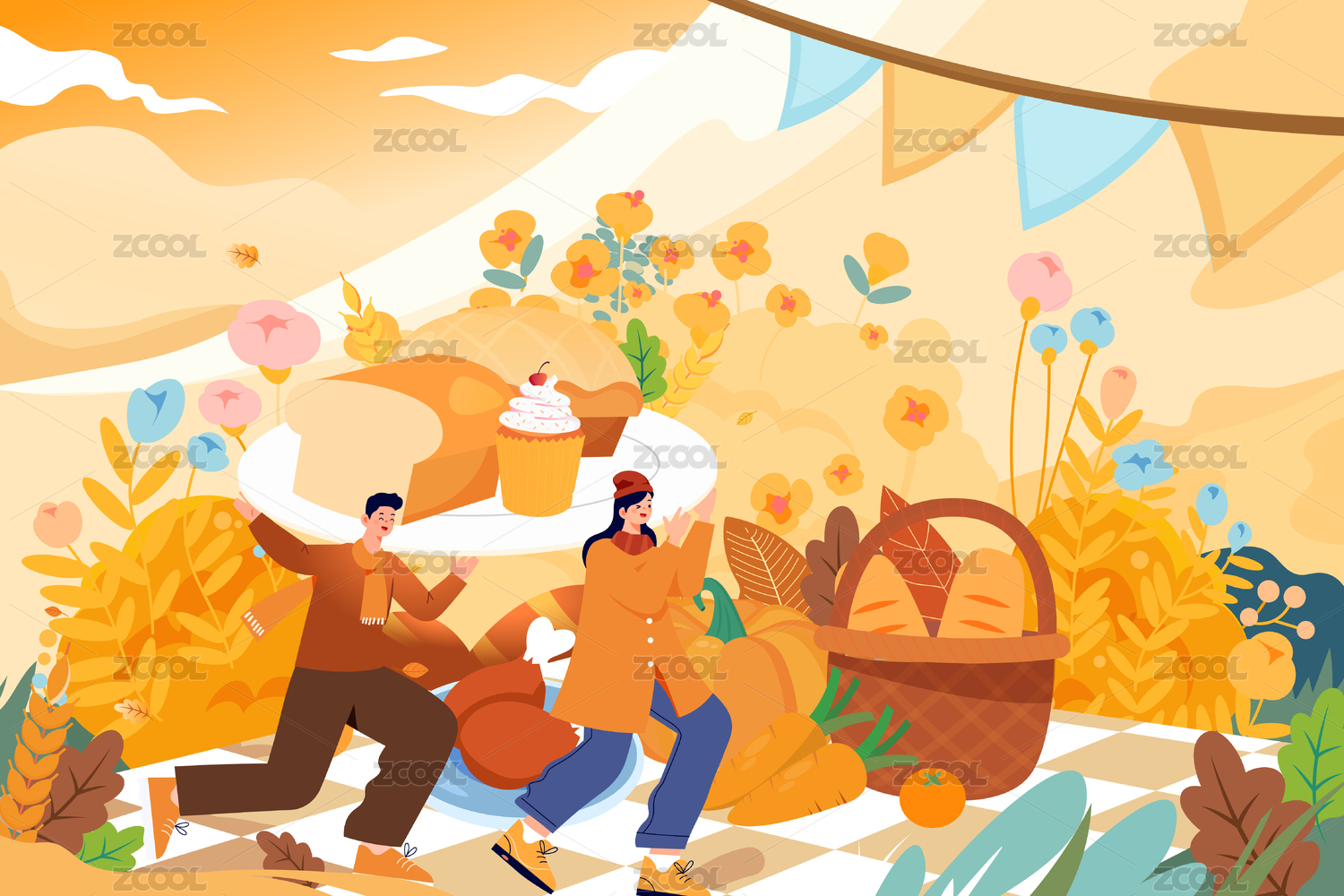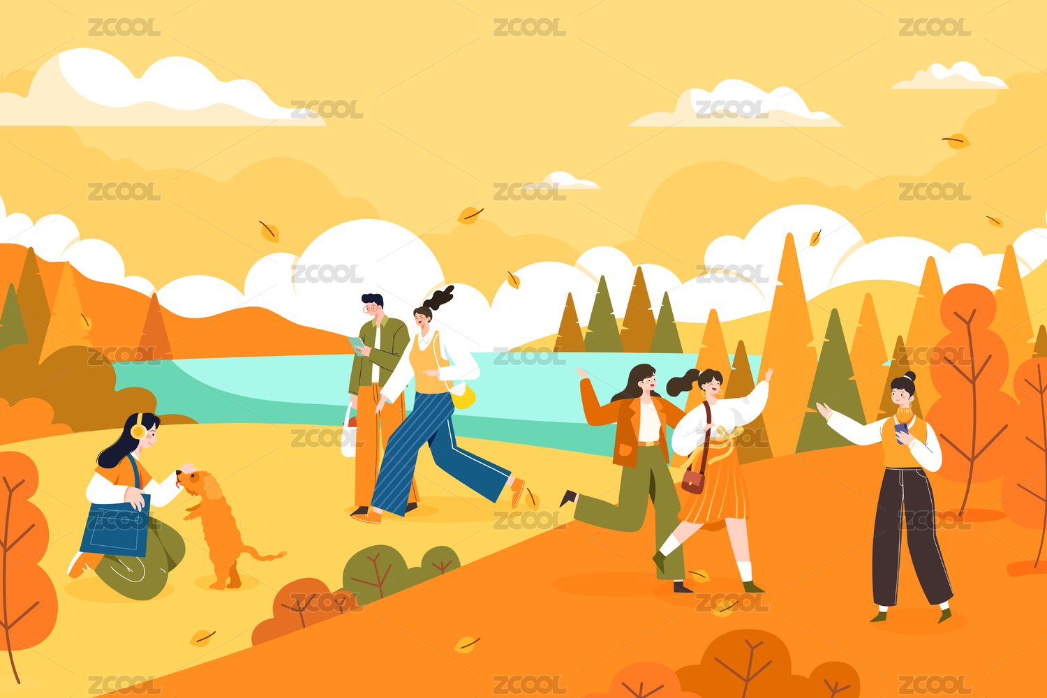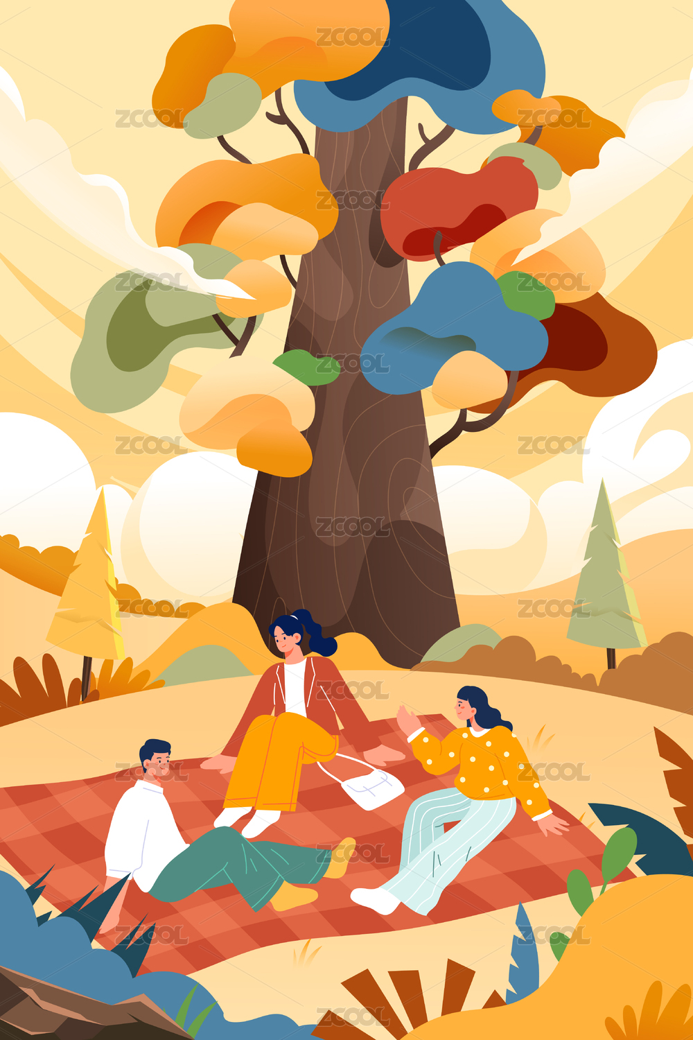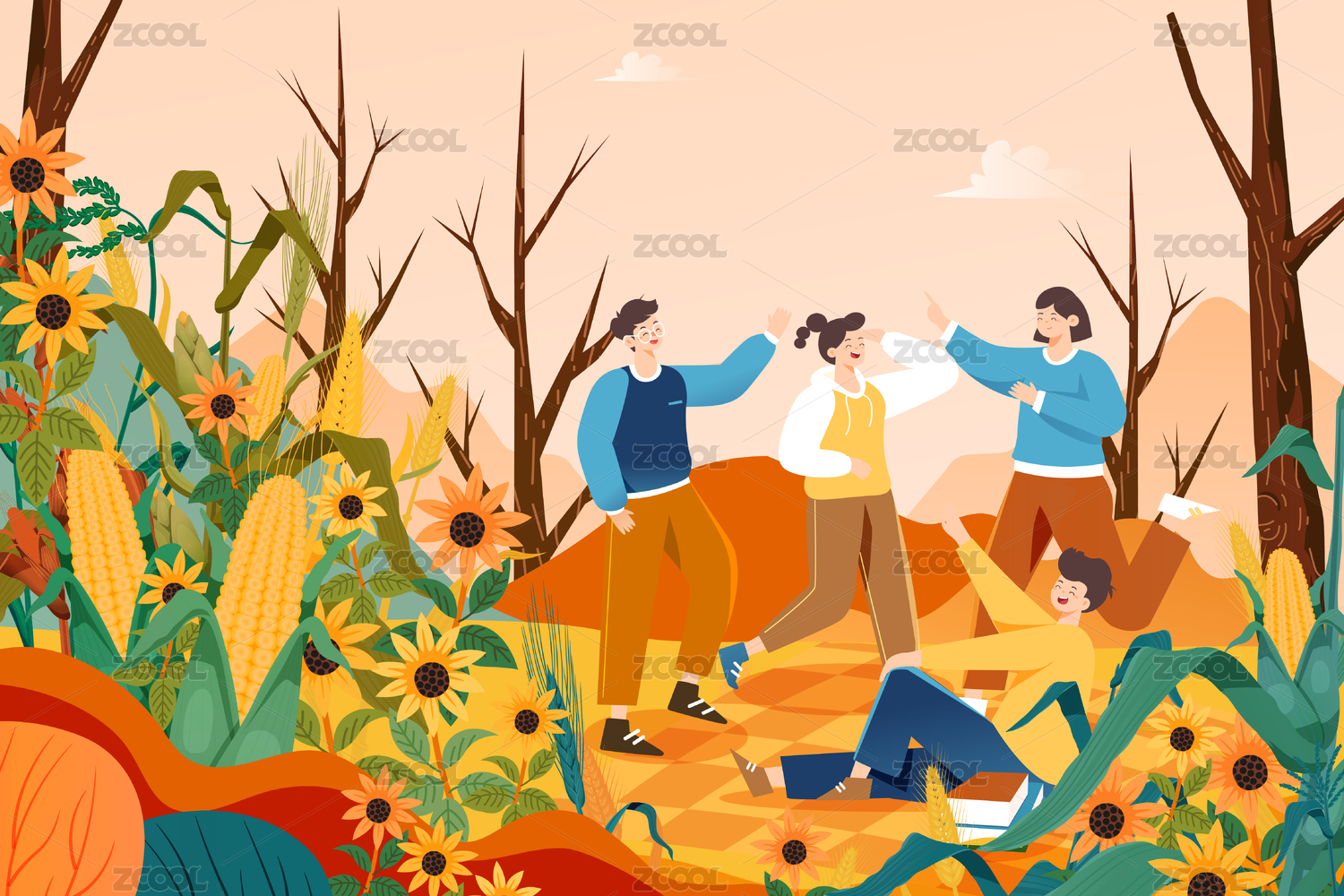 秋天秋游立秋秋分户外活动运动卡通漫画插画