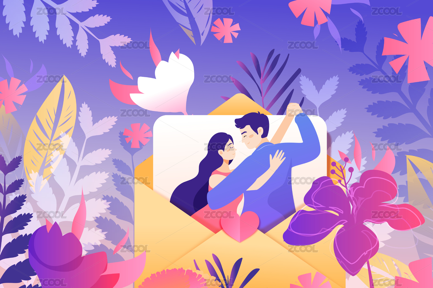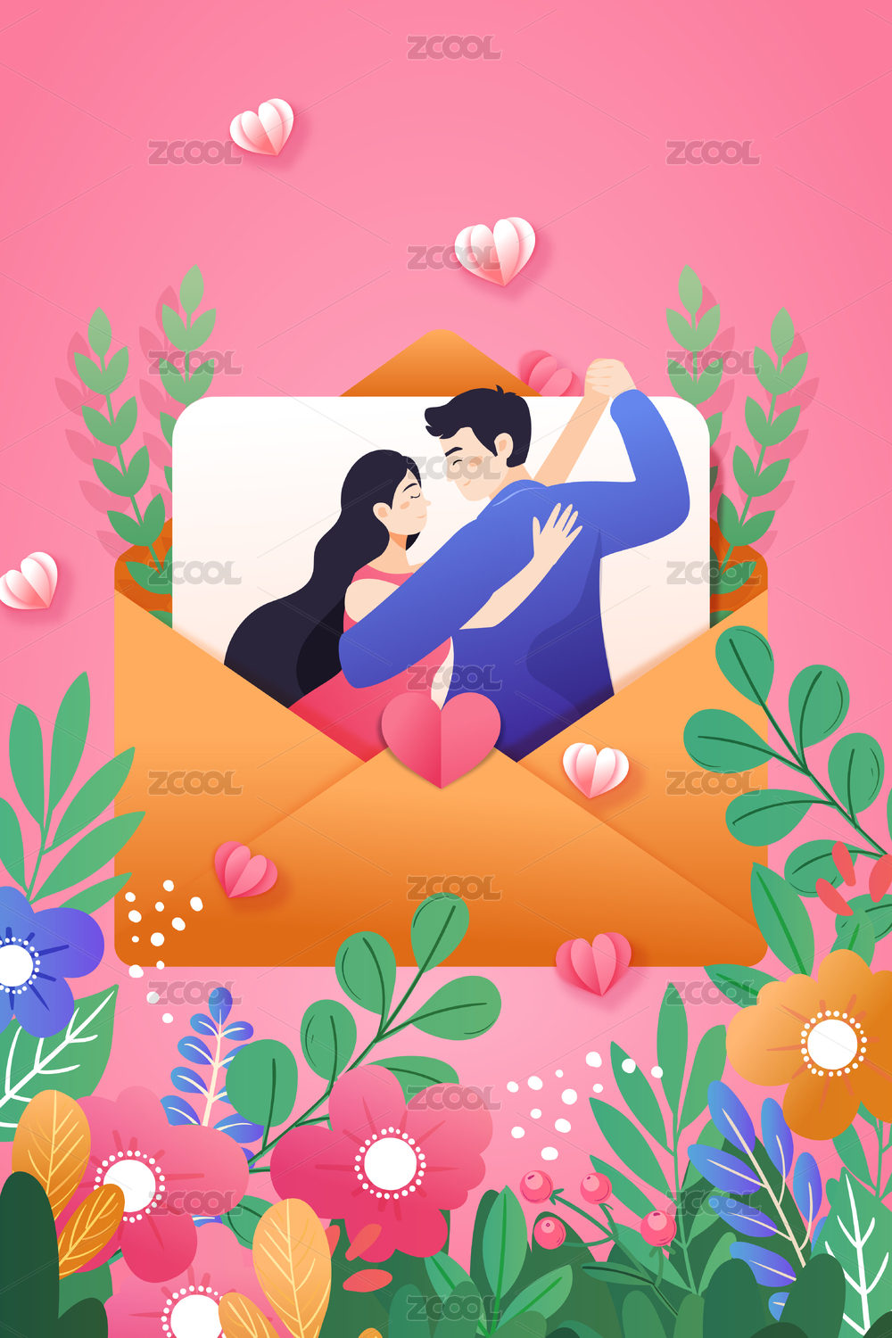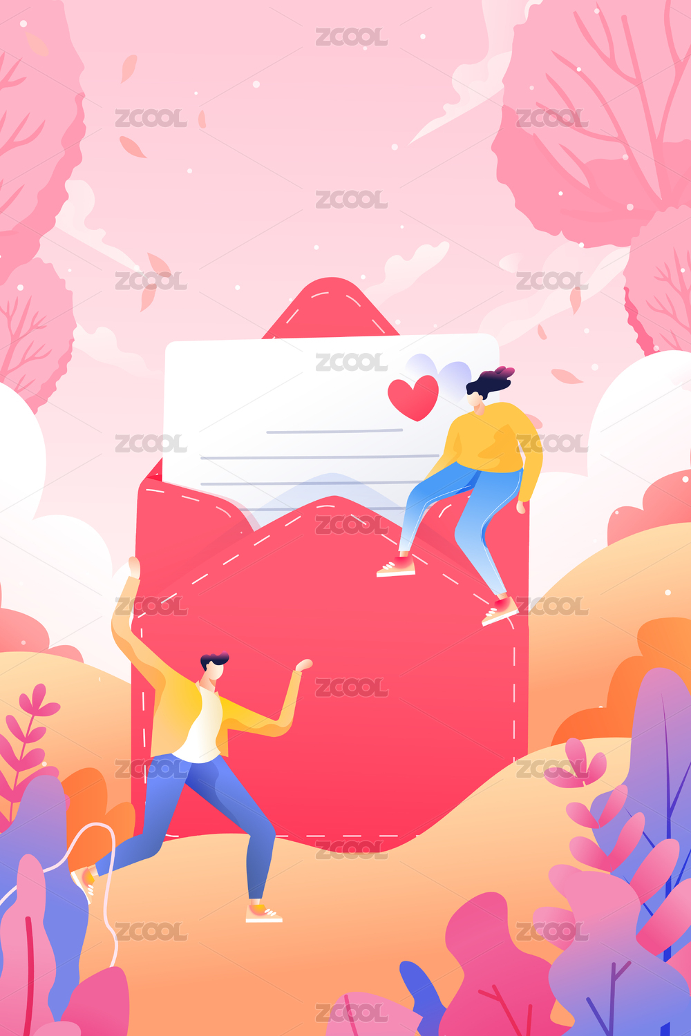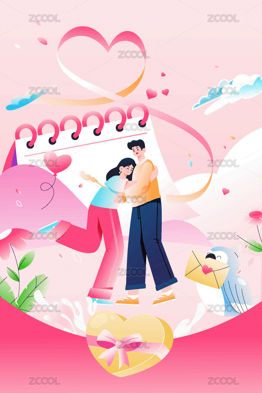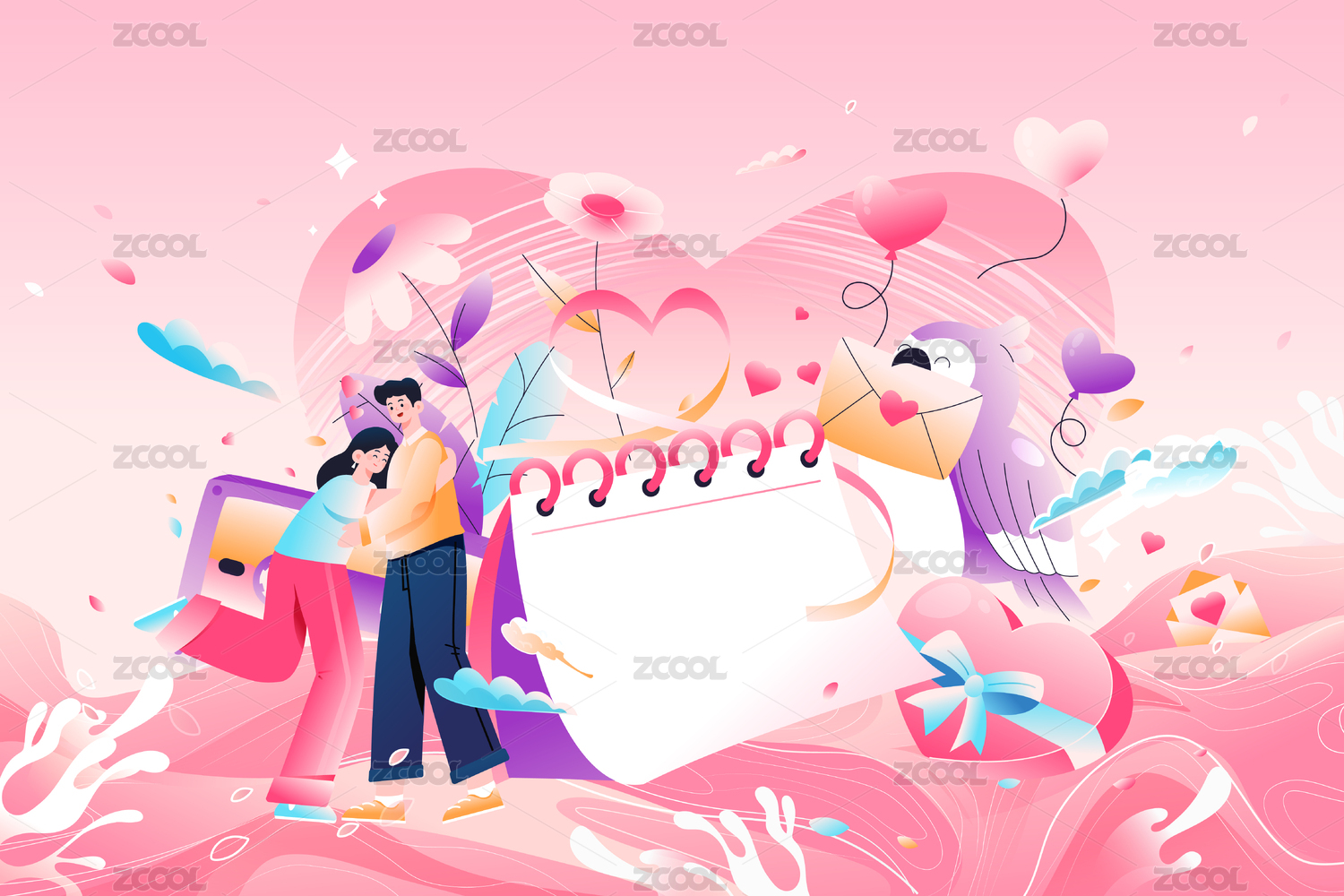 卡通清新情人节浪漫情侣约会背景矢量插画