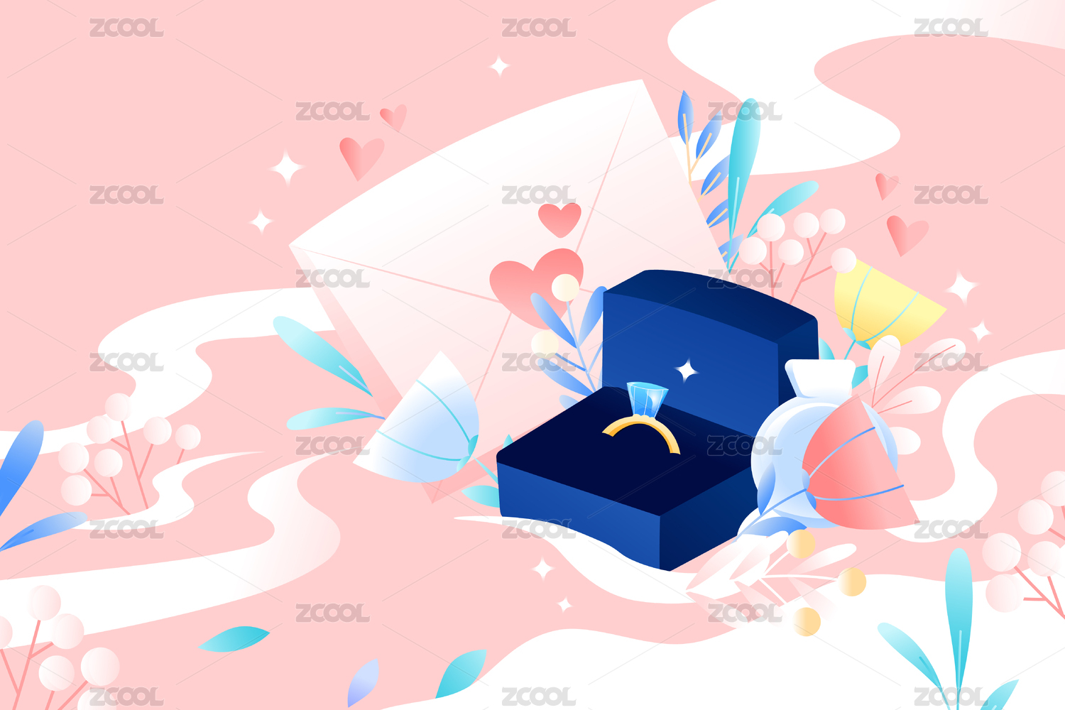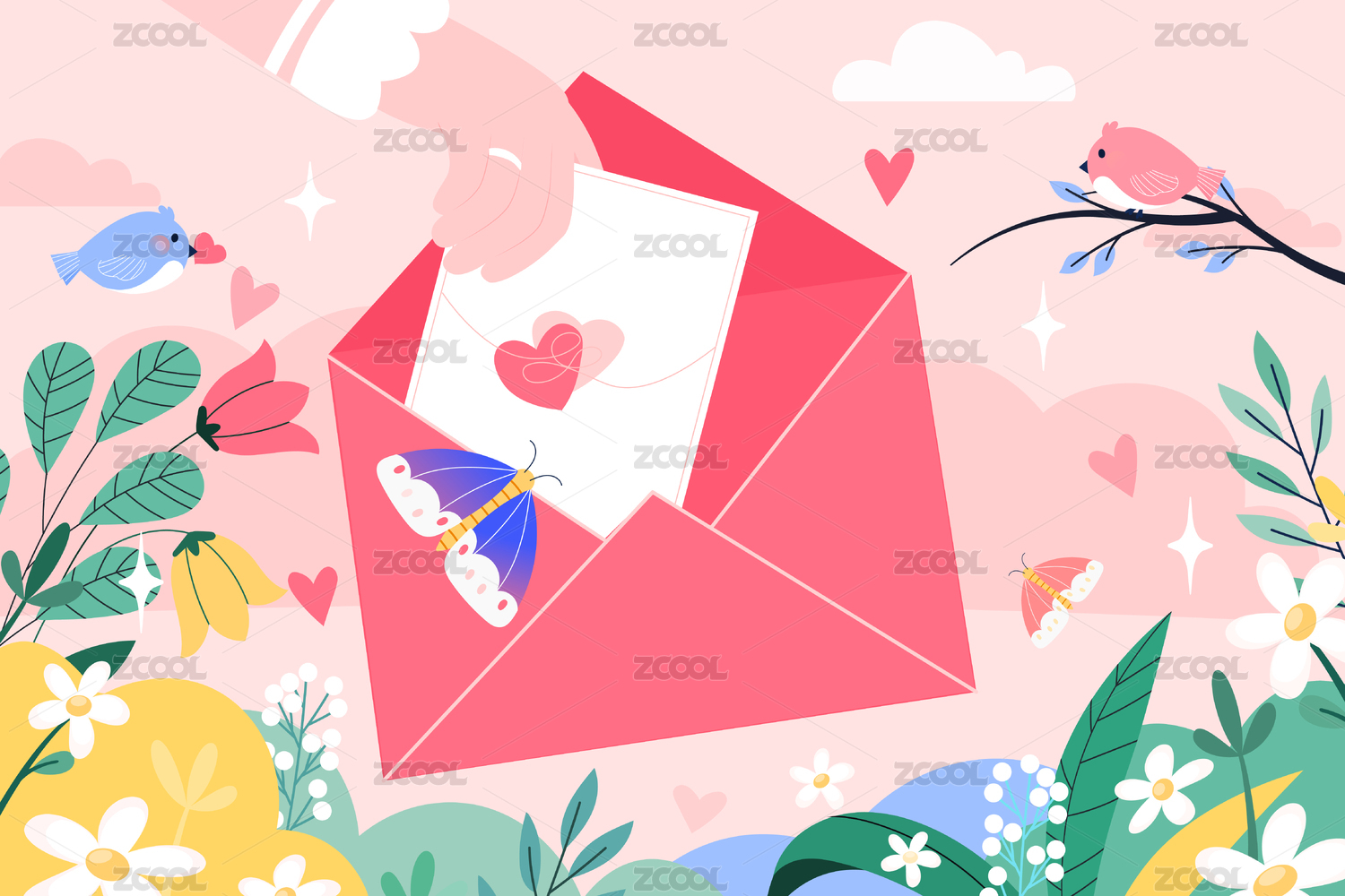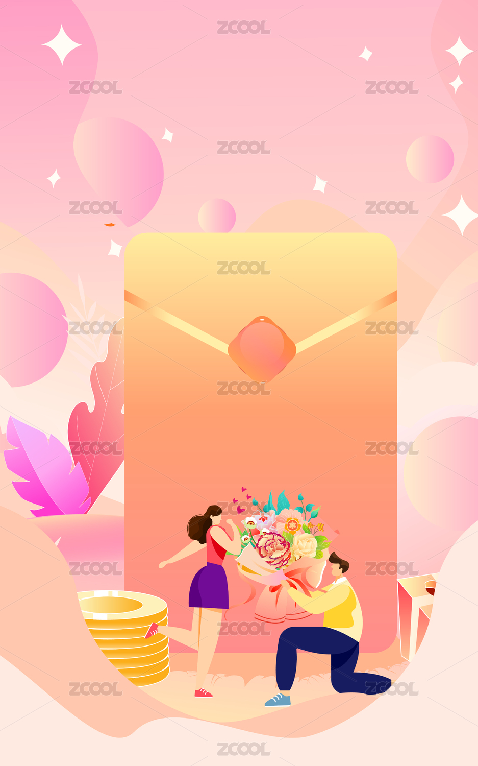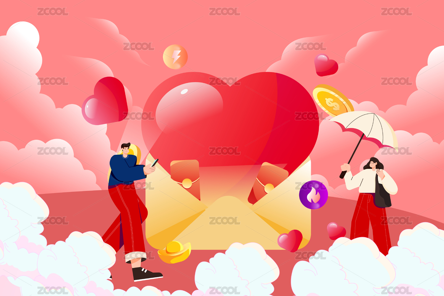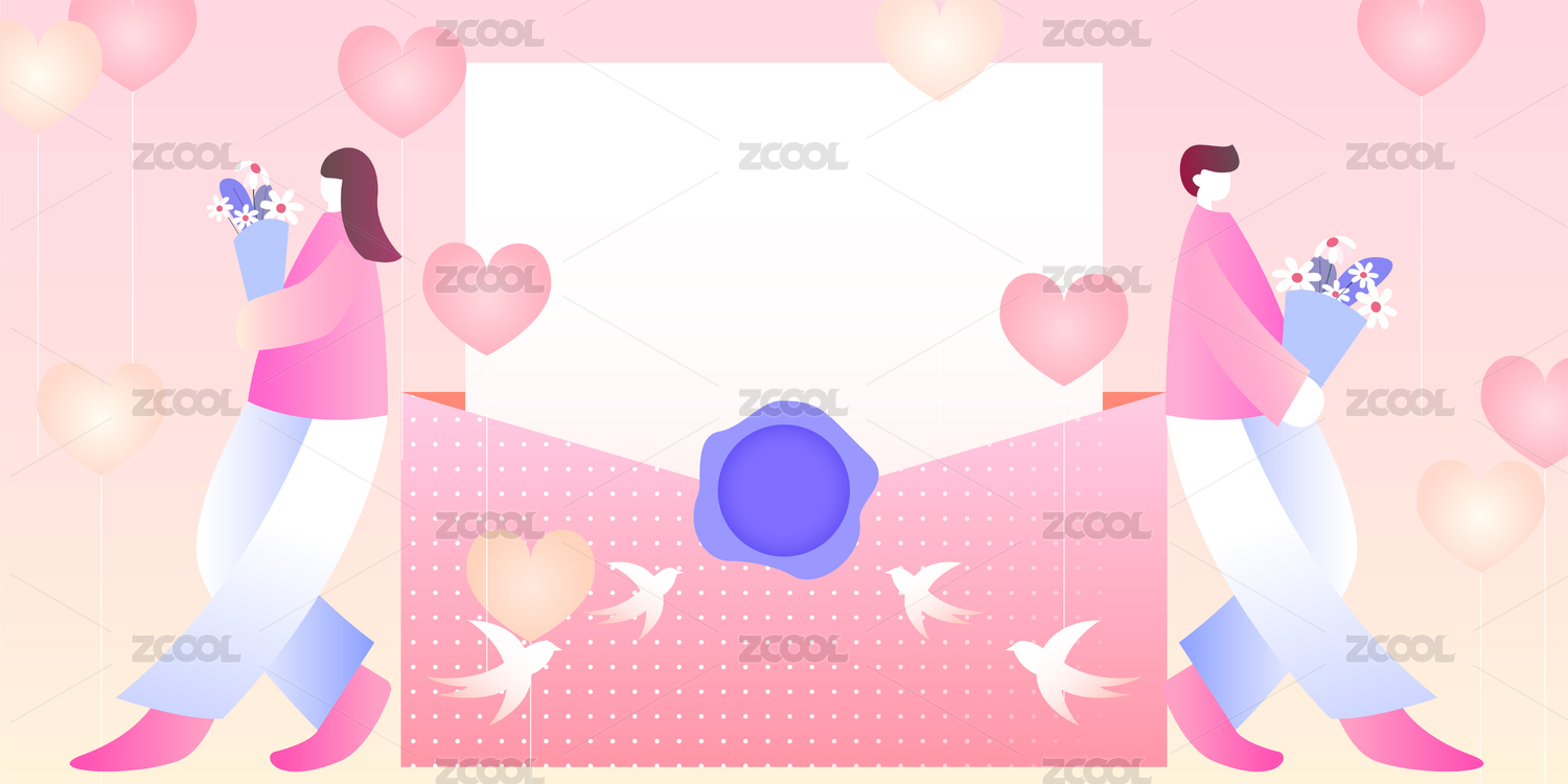 卡通清新情人节浪漫情侣约会背景矢量插画
