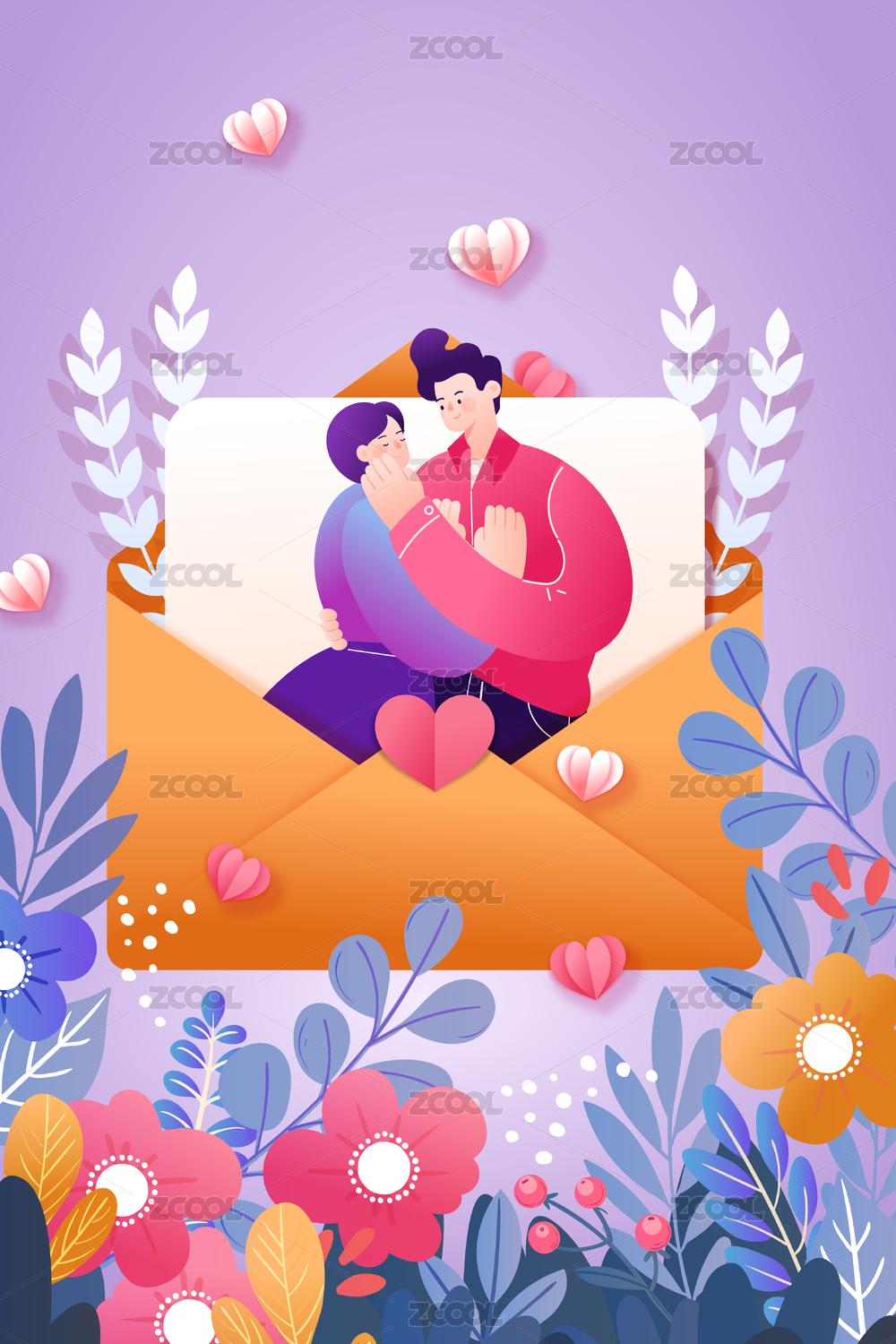 卡通清新七夕情人节情侣爱情矢量背景插画