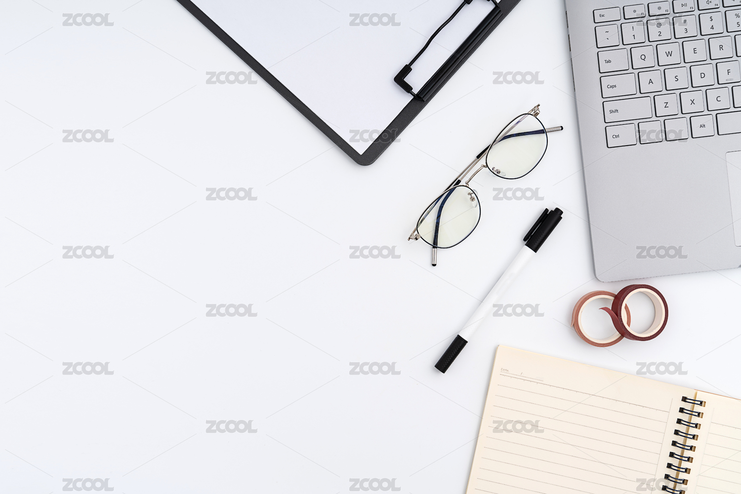 文具,设备,白色,背景,办公,场景,桌面,工作,干净,简单