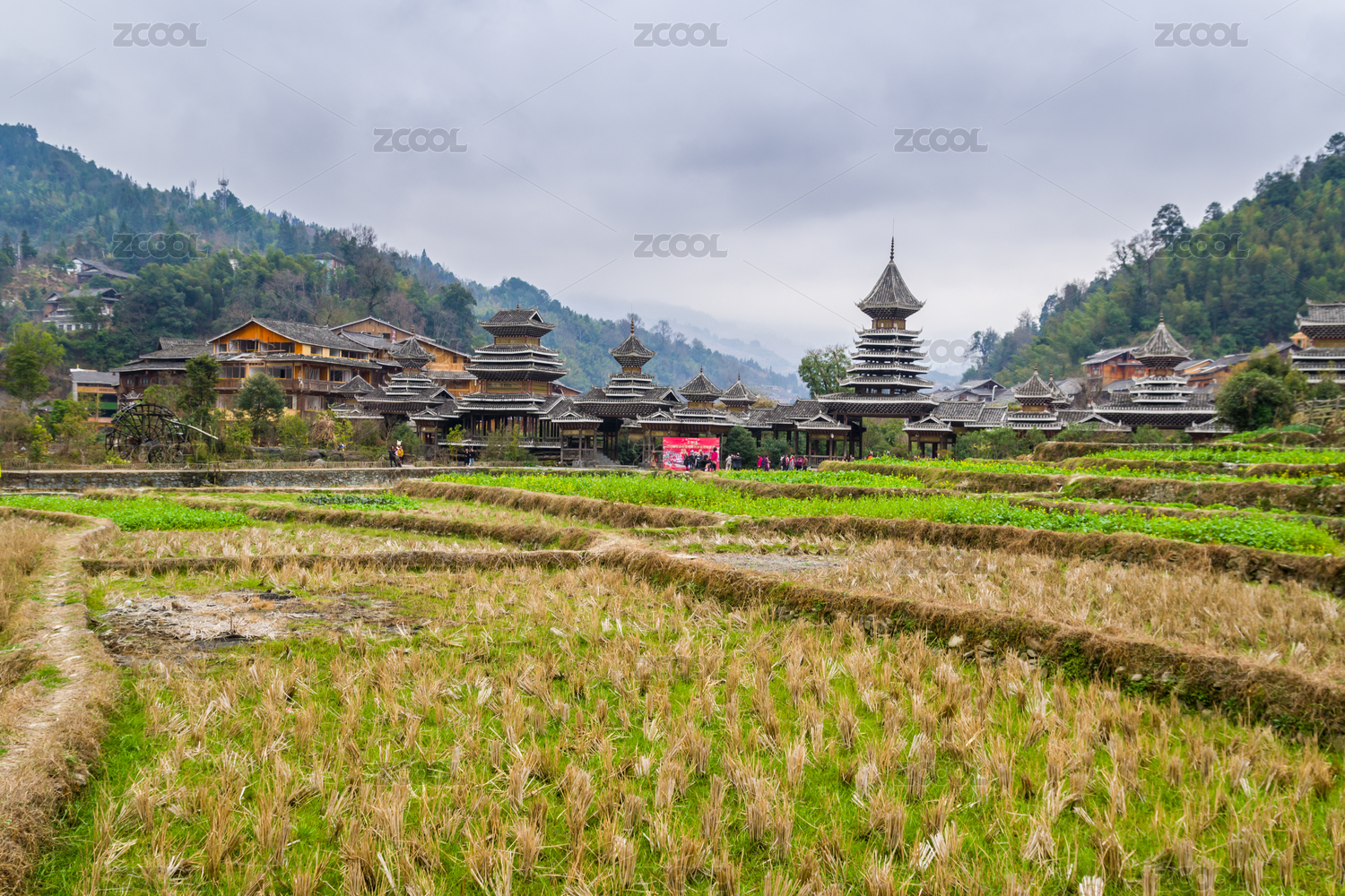 中国贵州黔东南黎平肇兴桐寨初春景观