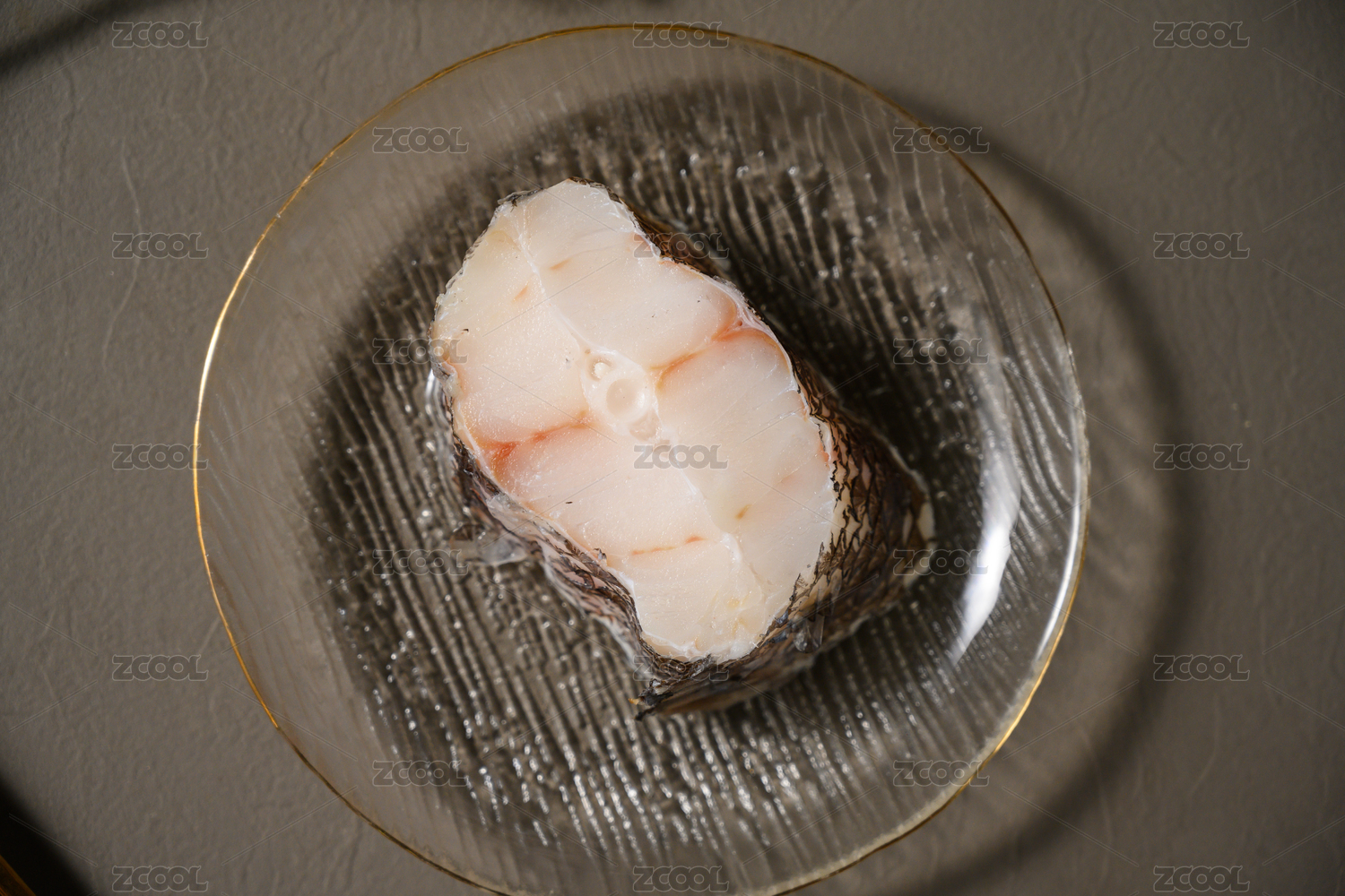 桌面上的盘子里的美味可口的新鲜鳕鱼扒